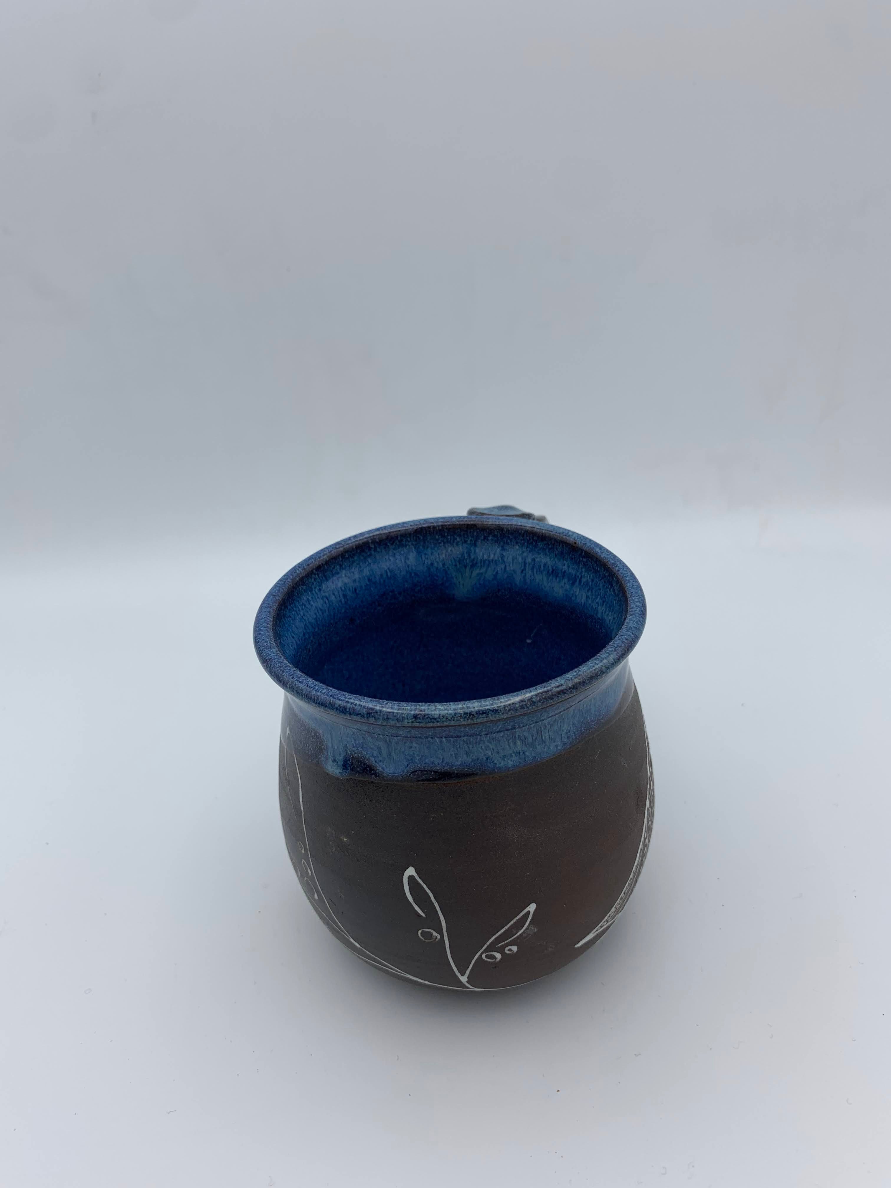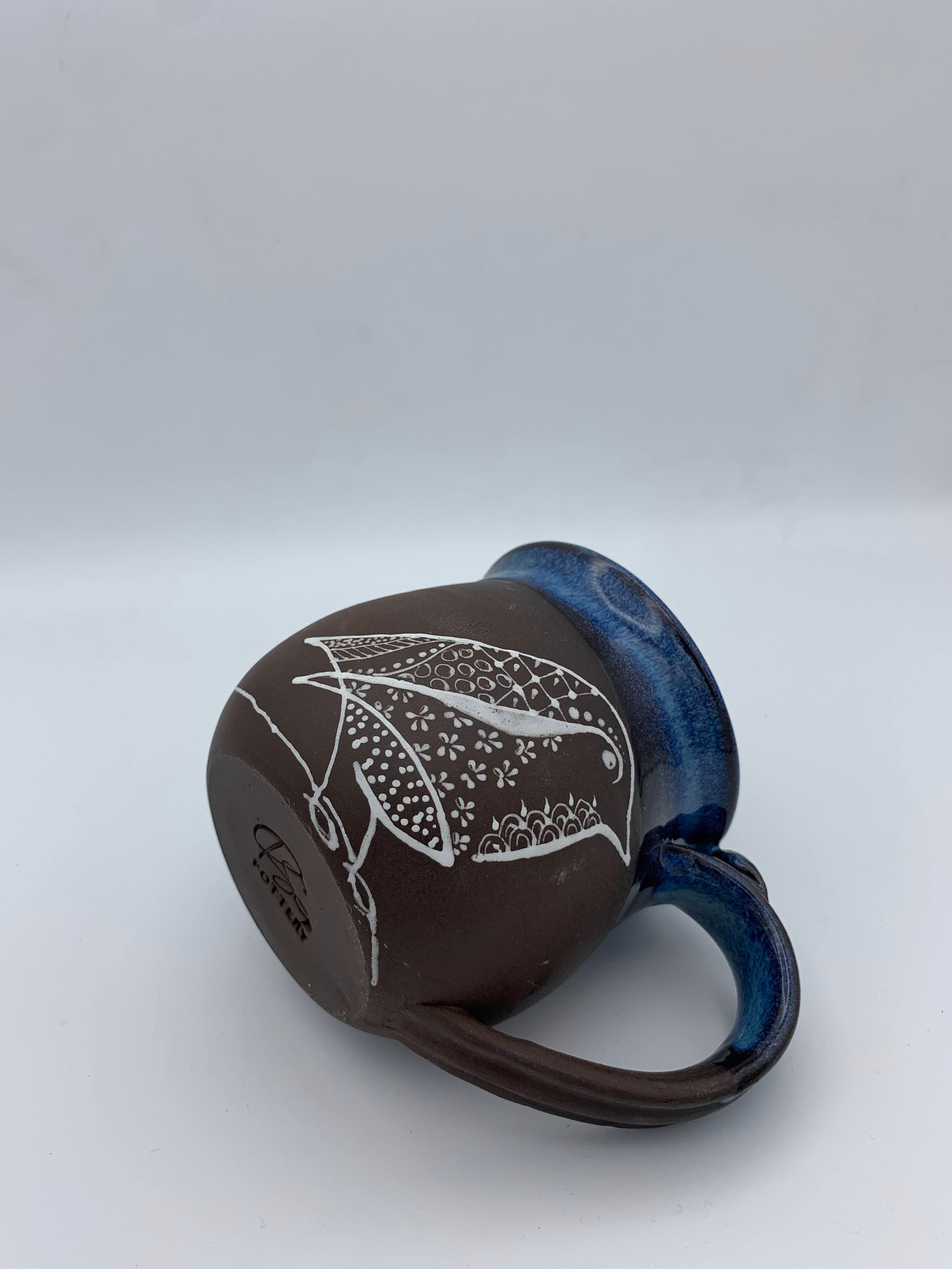 Hand drawn designs. Each mug design will vary slightly.
