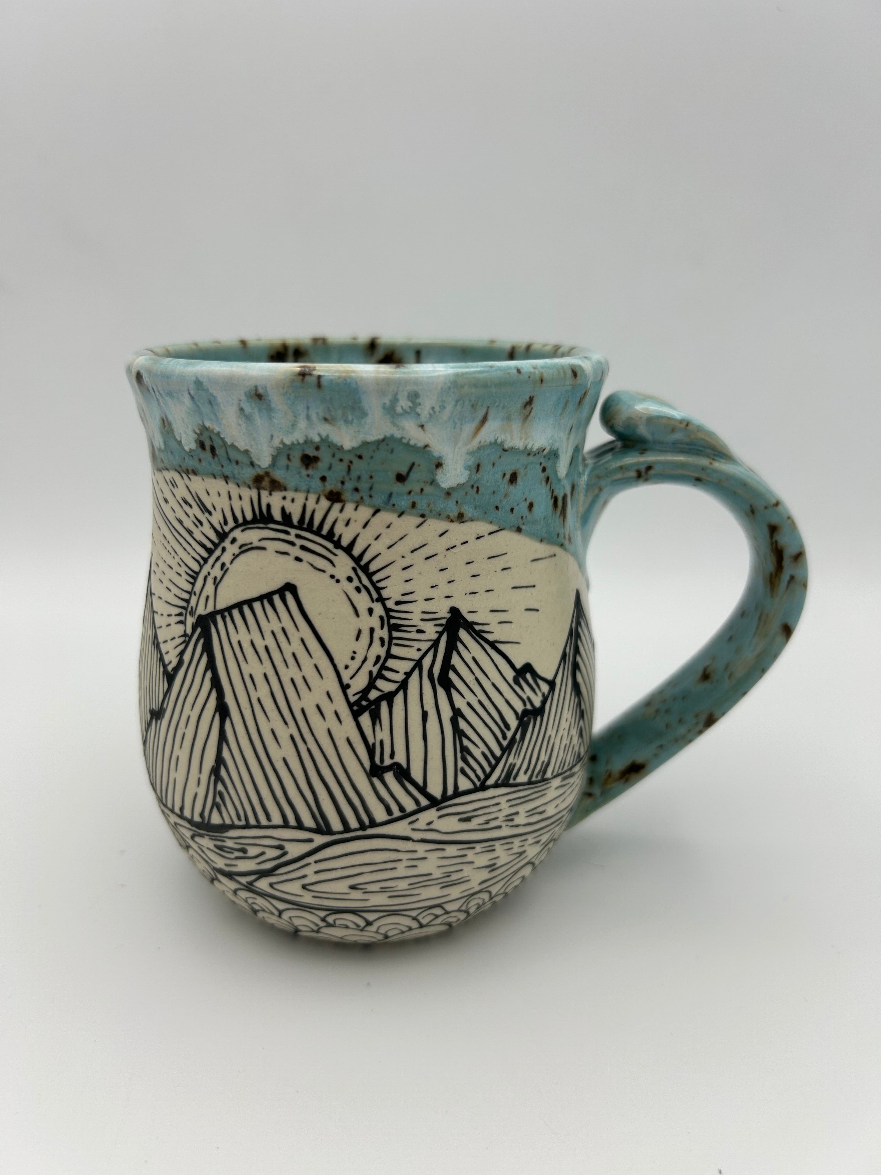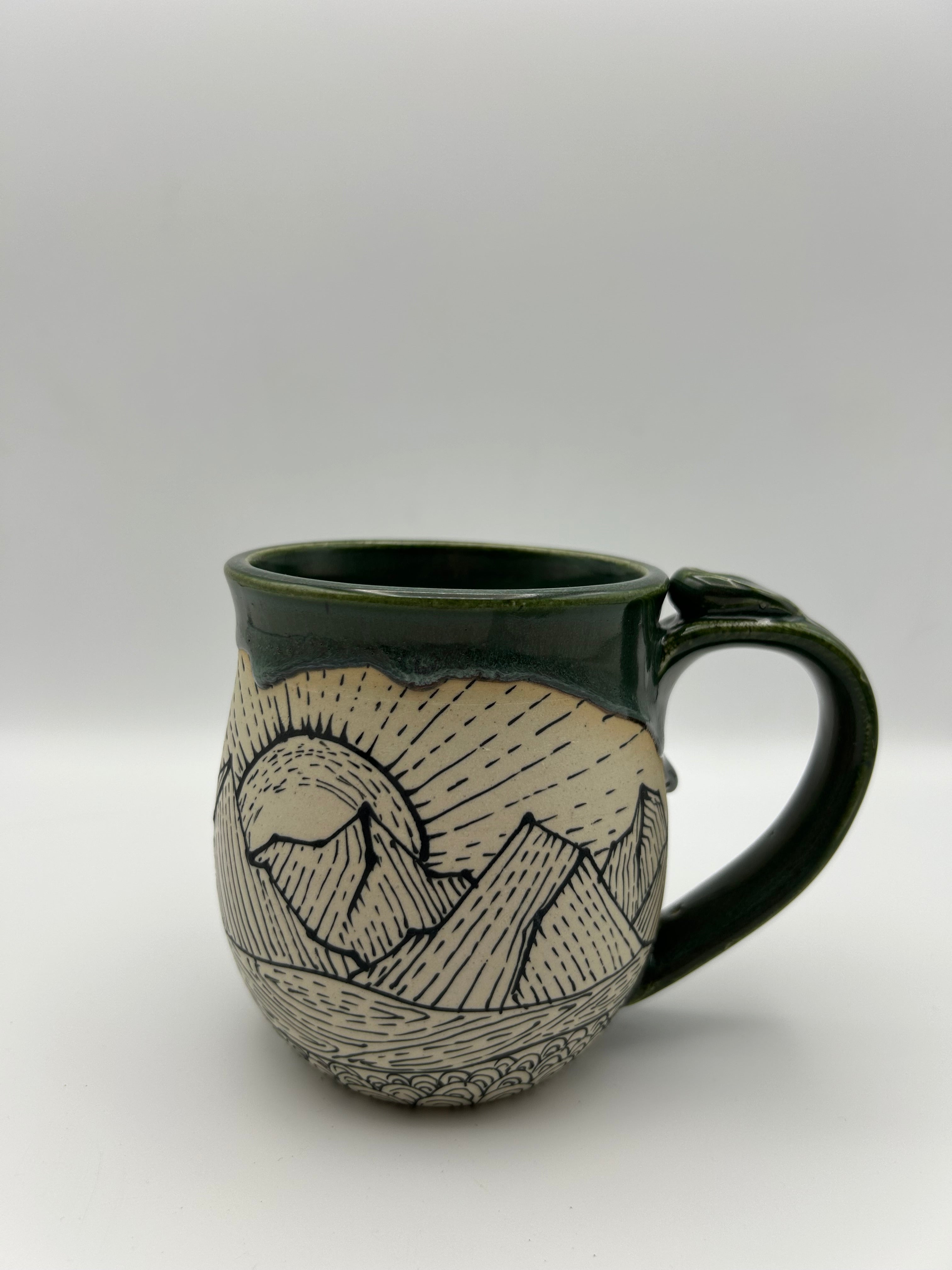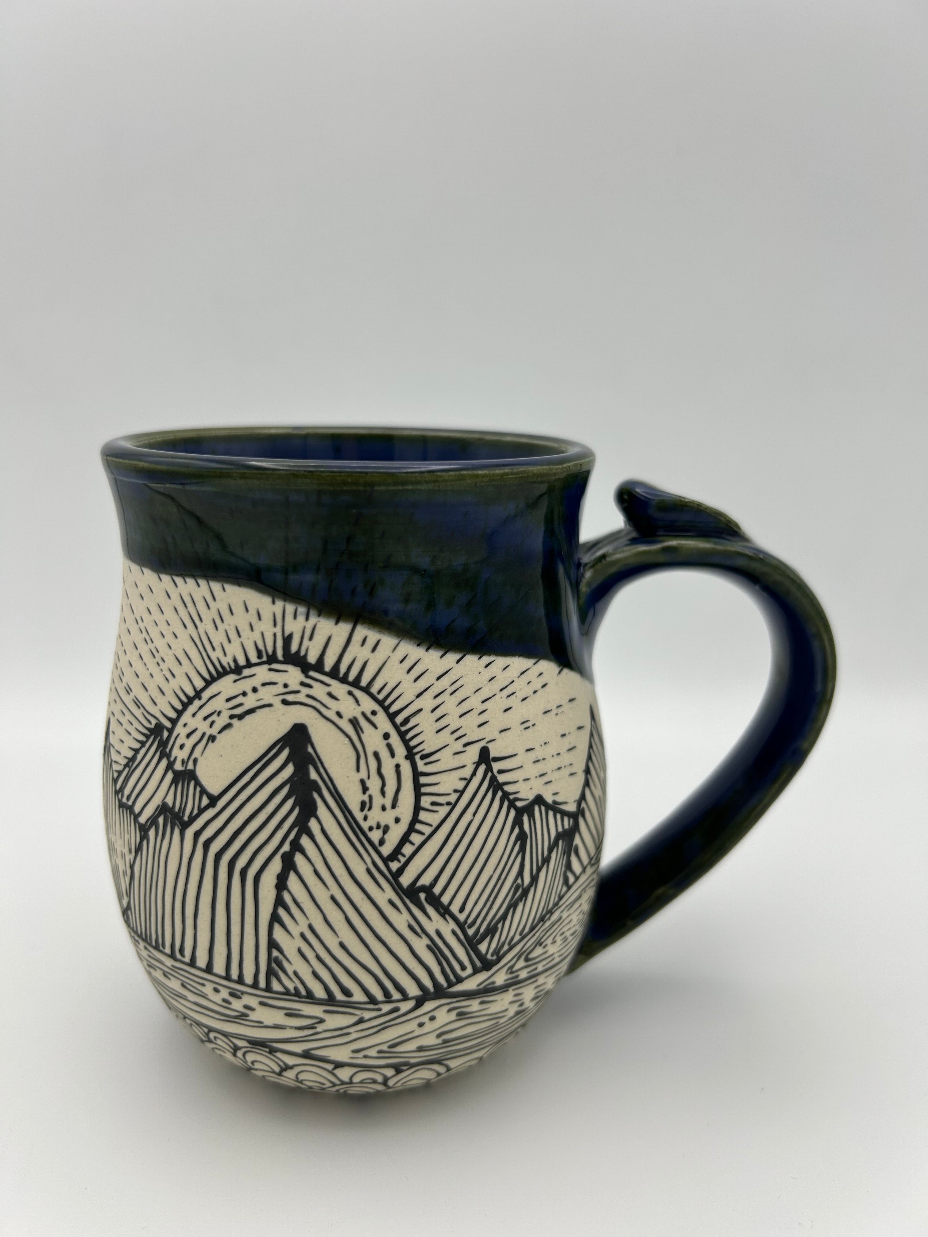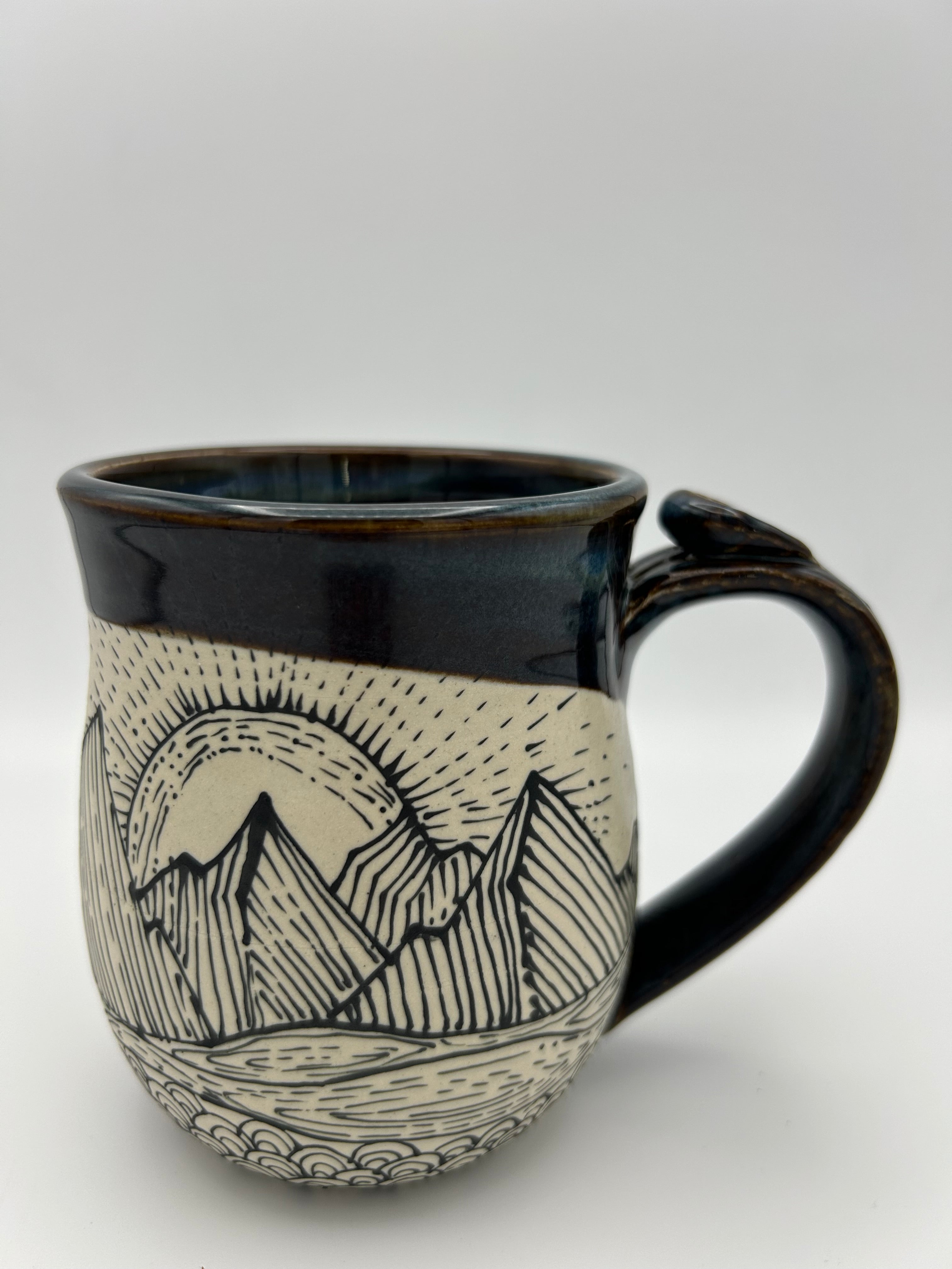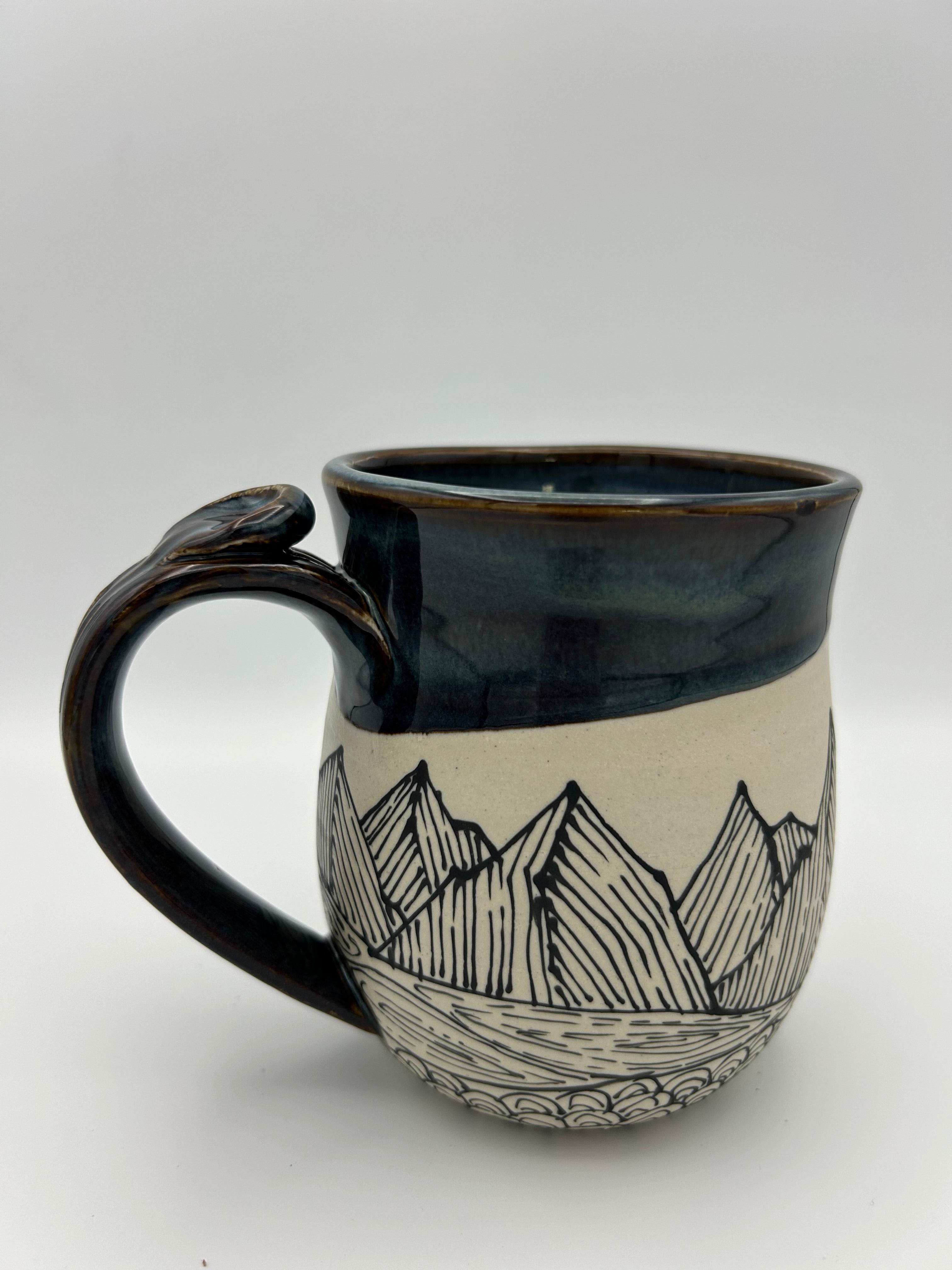 These mugs are entirely hand drawn to create a beautiful line work mountain scene.