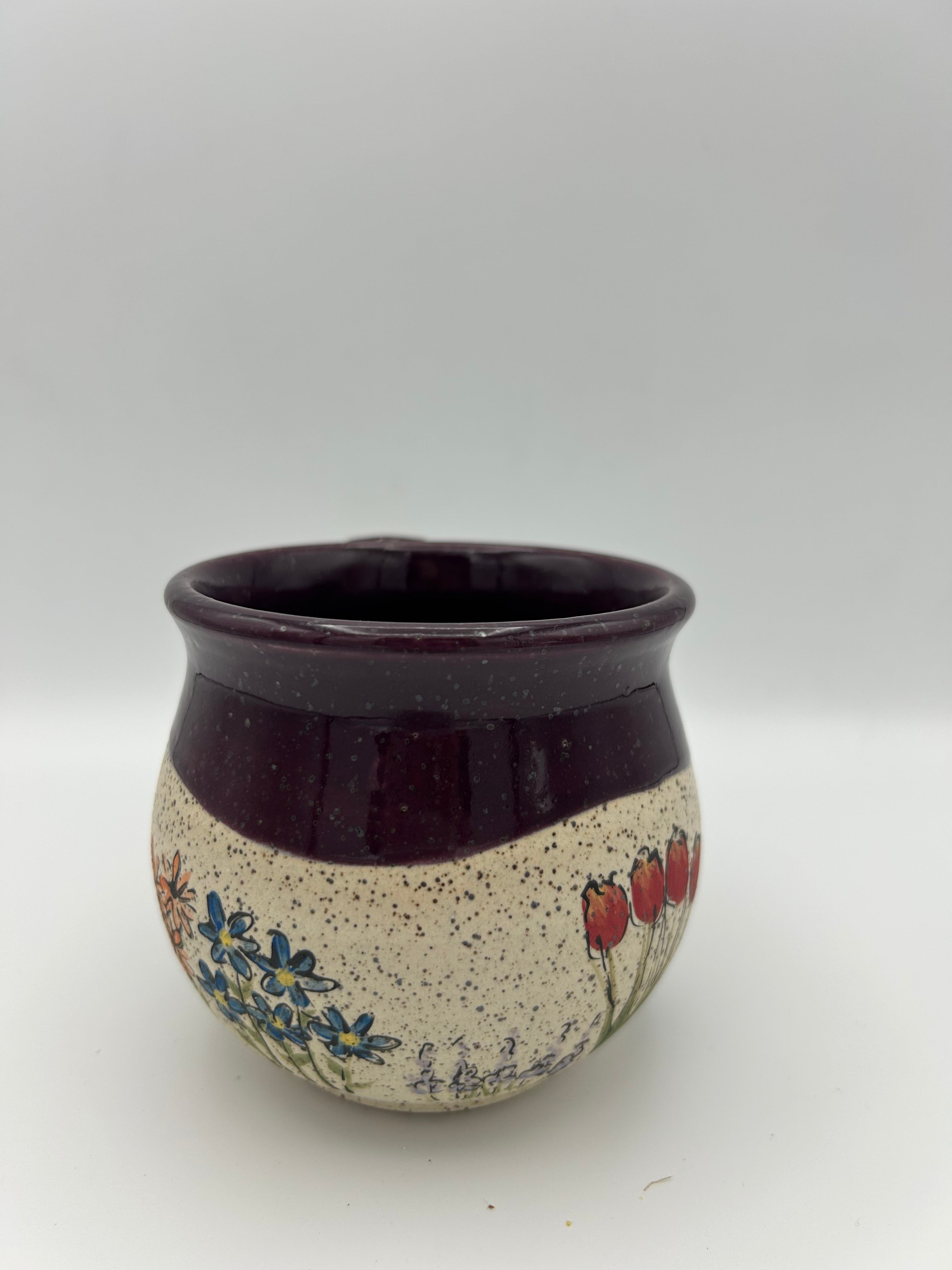 Enjoy a cup of coffee and a walk through a beautiful flower garden with this mug. Every flower was hand-painted.
