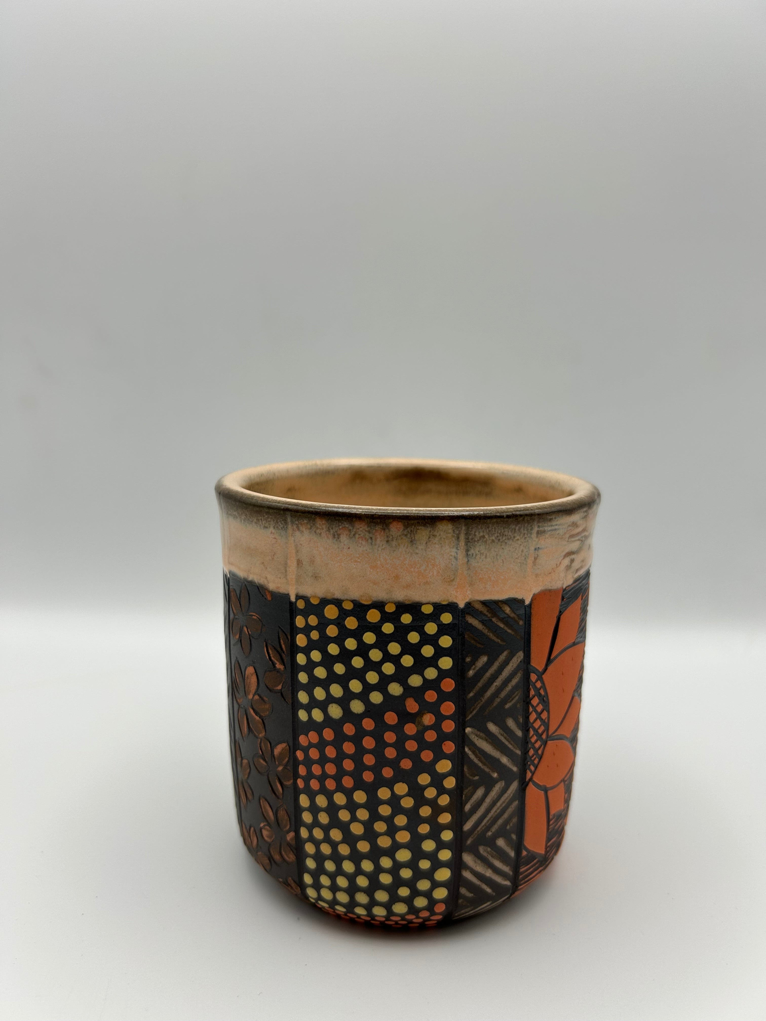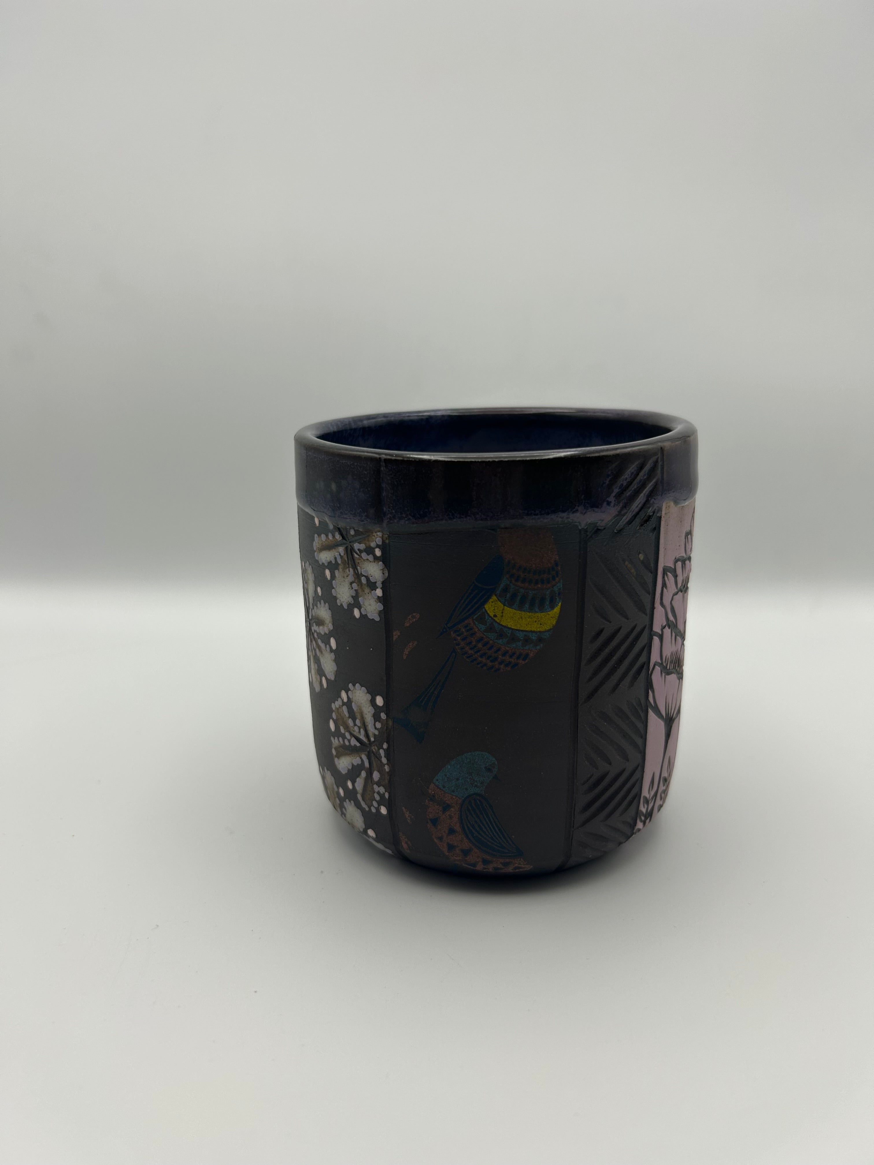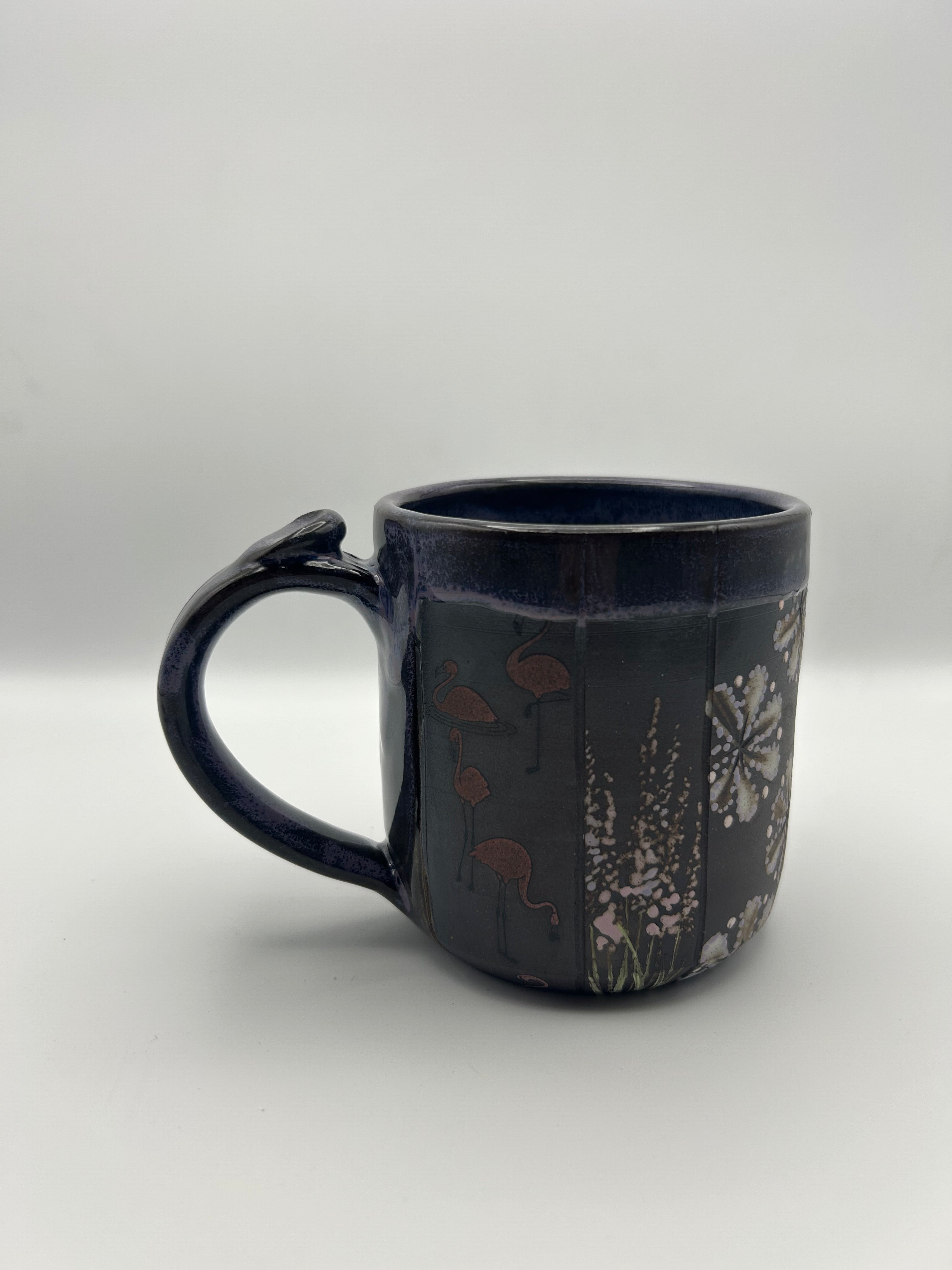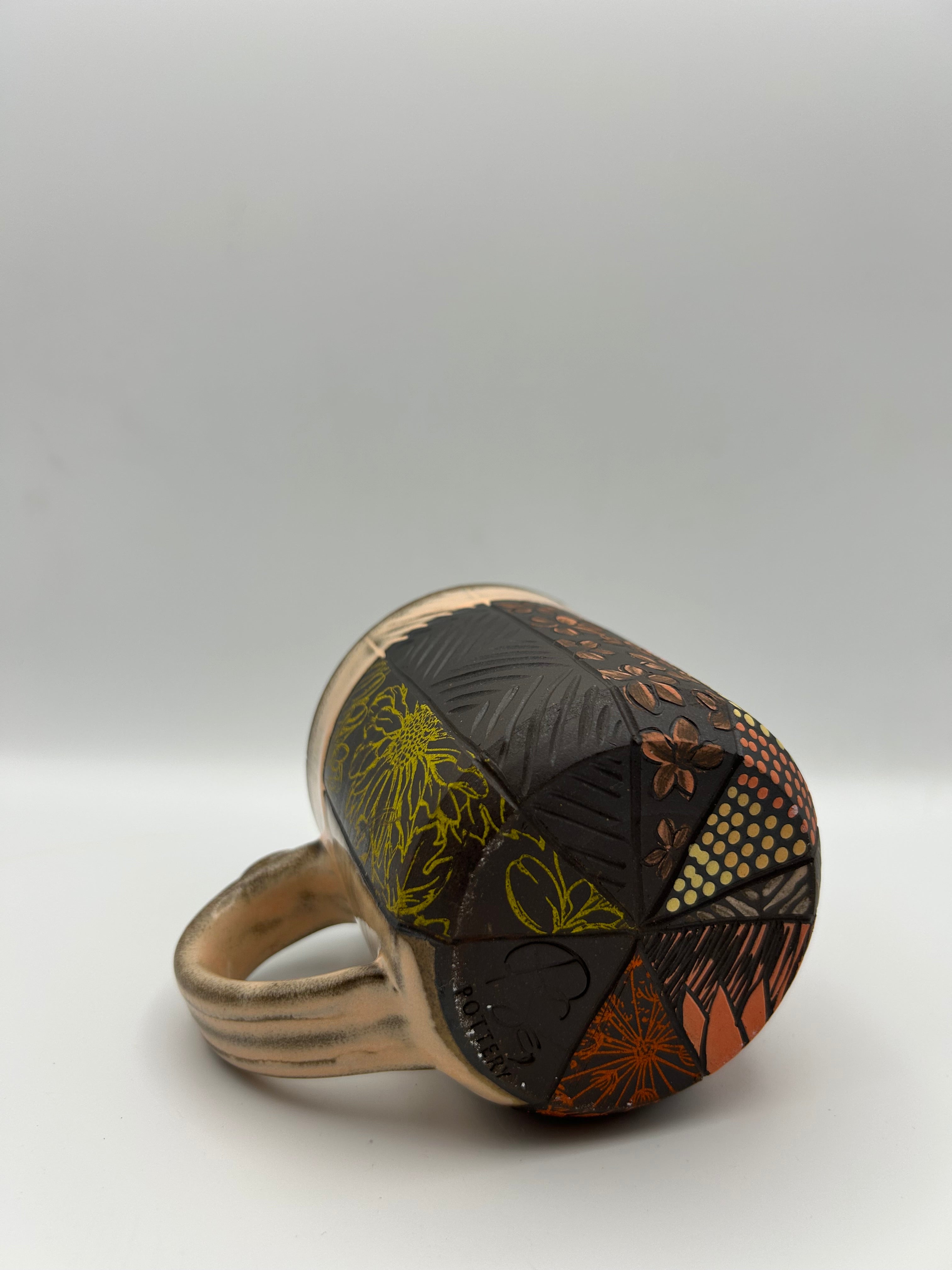 A combination of painting, carving, sgraffito, slip trailing, and transfers, these mugs are some of my very favorite to make. Each design is unique.