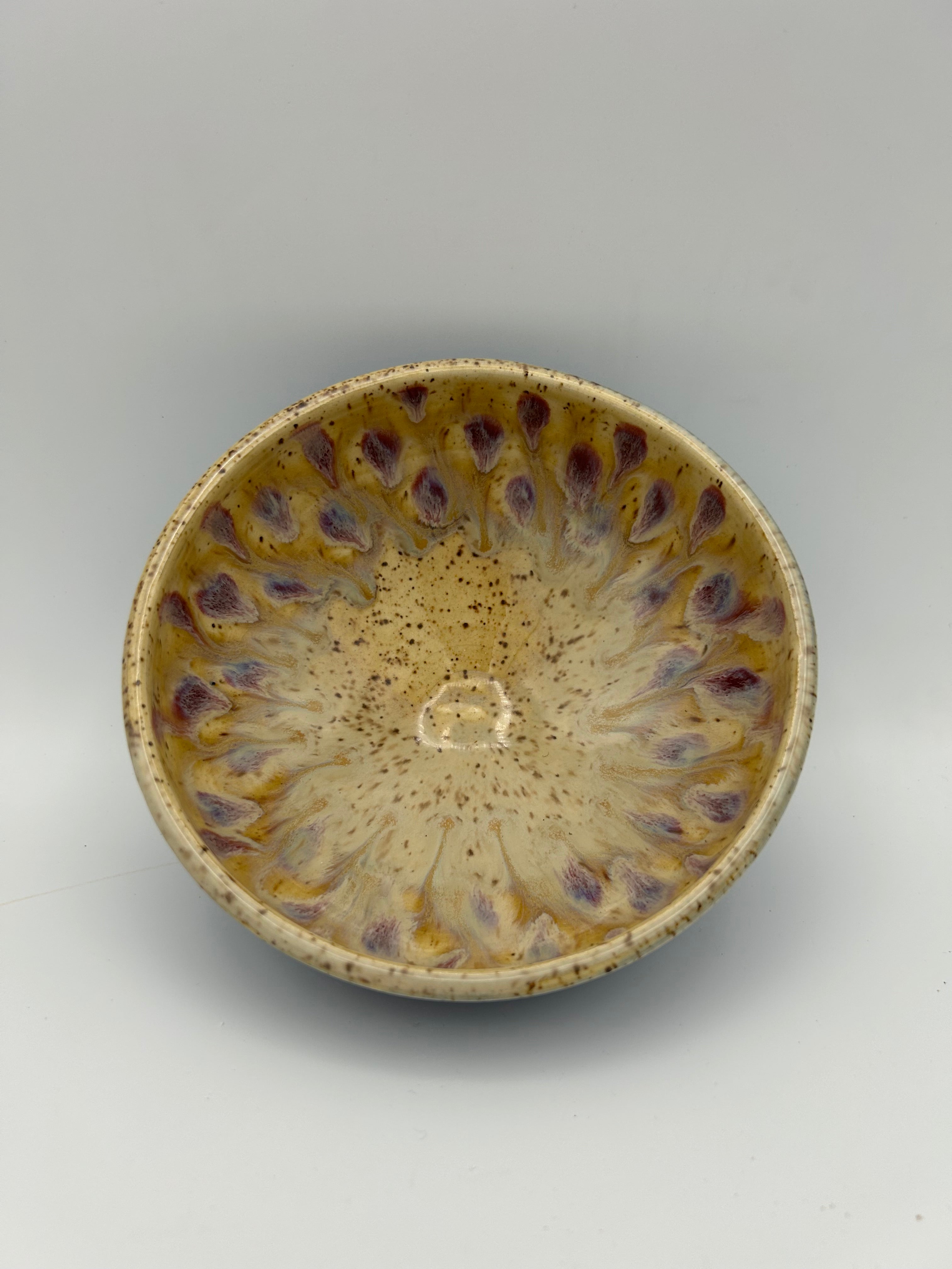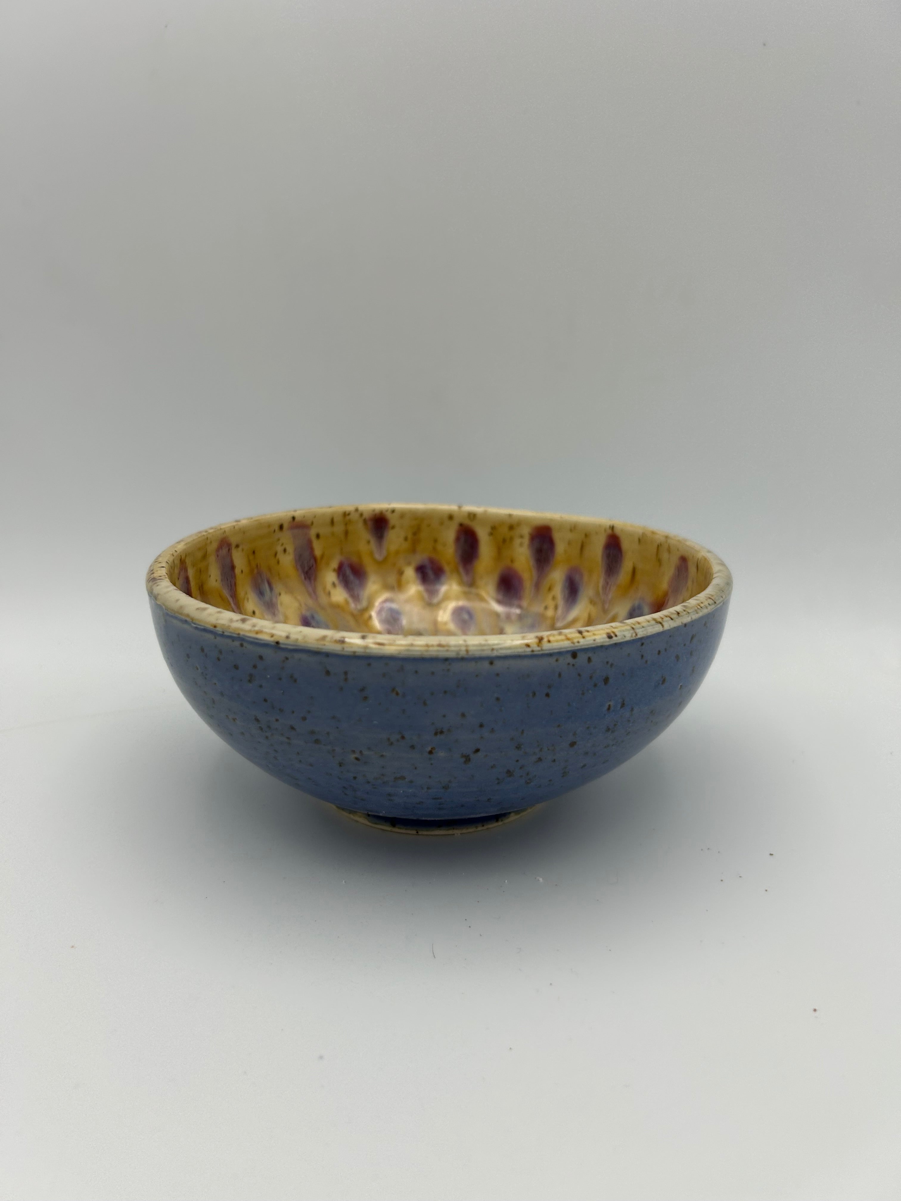 Peacock glaze technique makes this bowl a unique addition to your home.