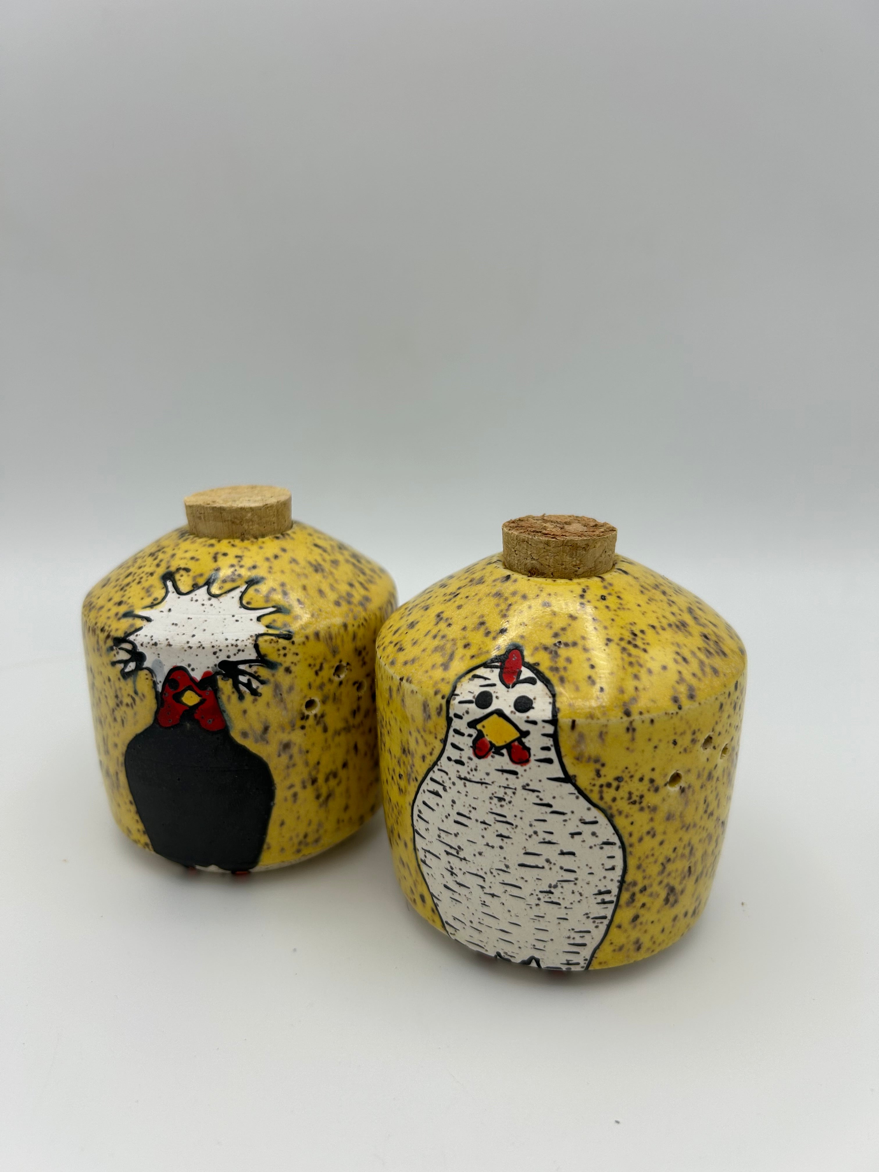 These unique shakers work for salt, pepper, or finely ground seasonings. No one else will have shakers quite like these. And the feet are so funny!