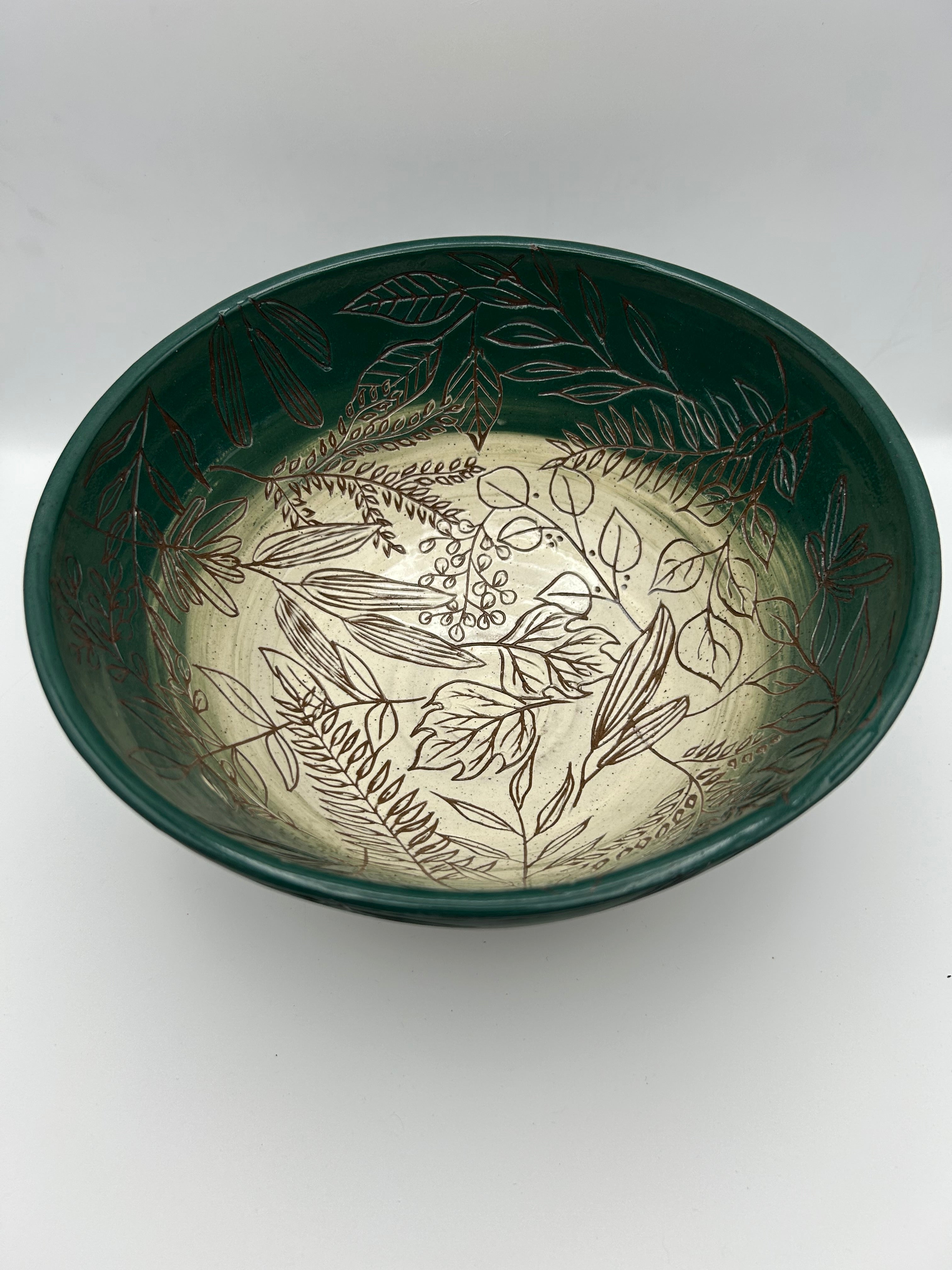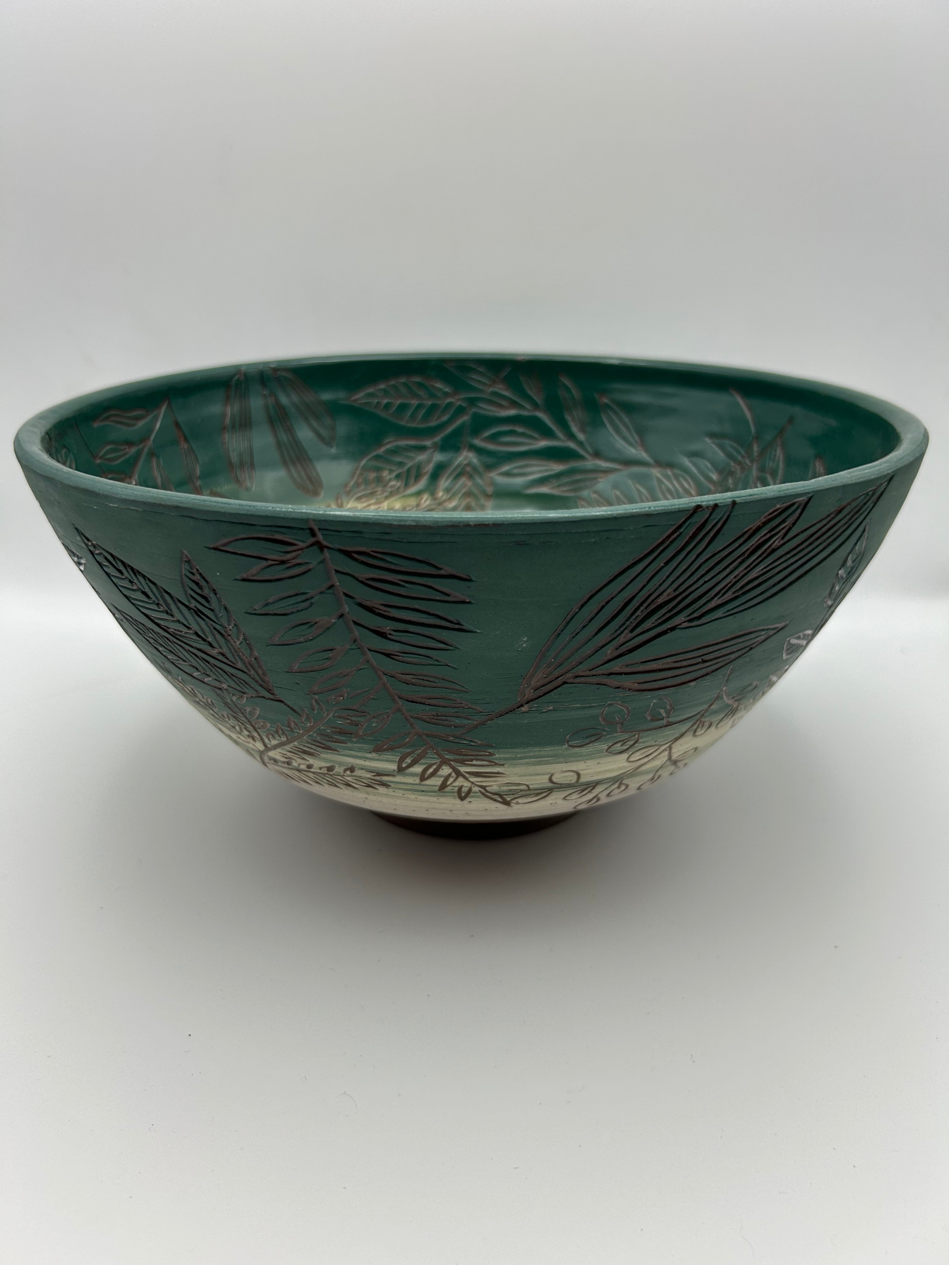 Sgraffito Floral Serving Bowl