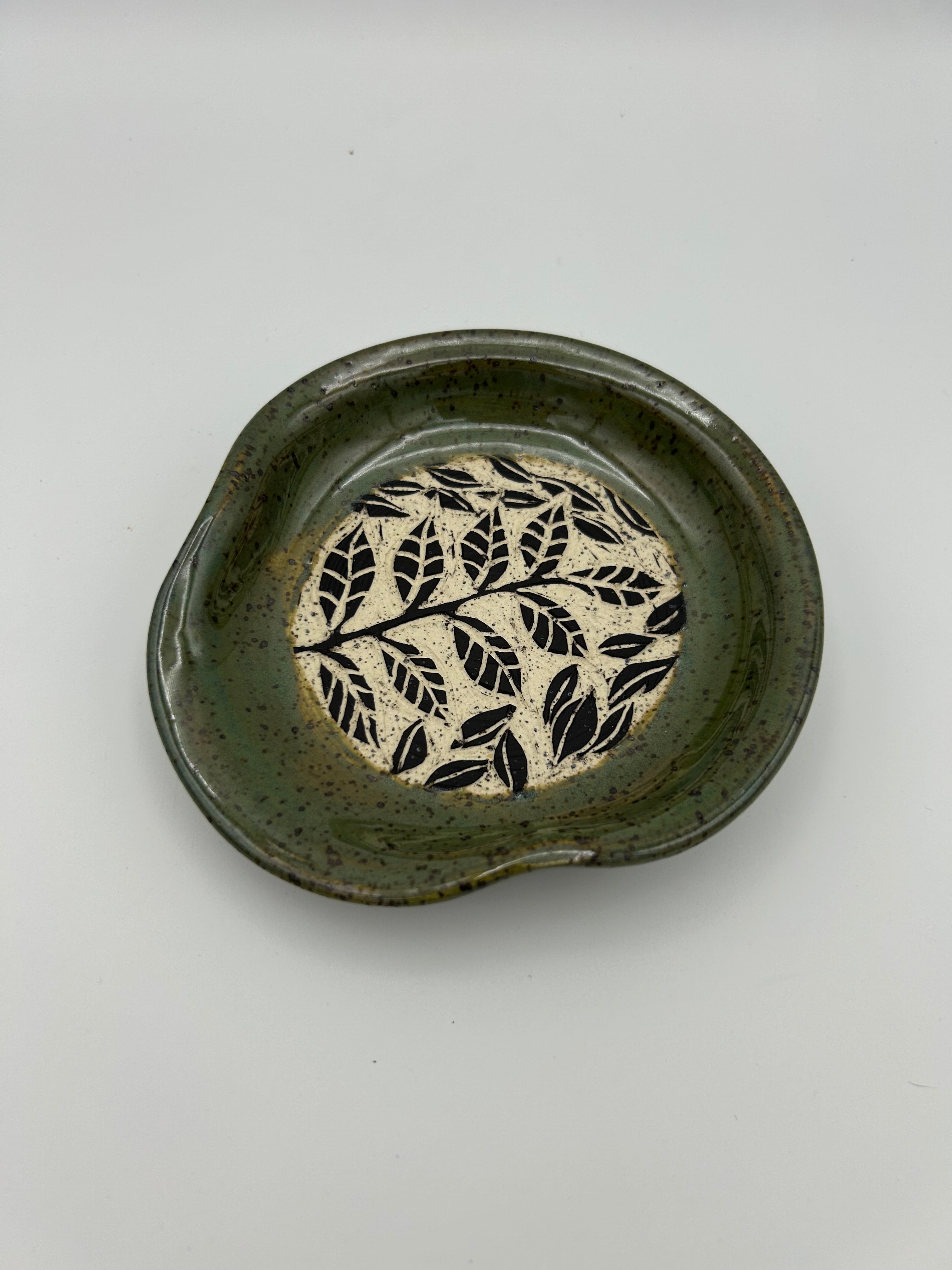 Sgraffito Leaves Spoon Rest - Deep Green