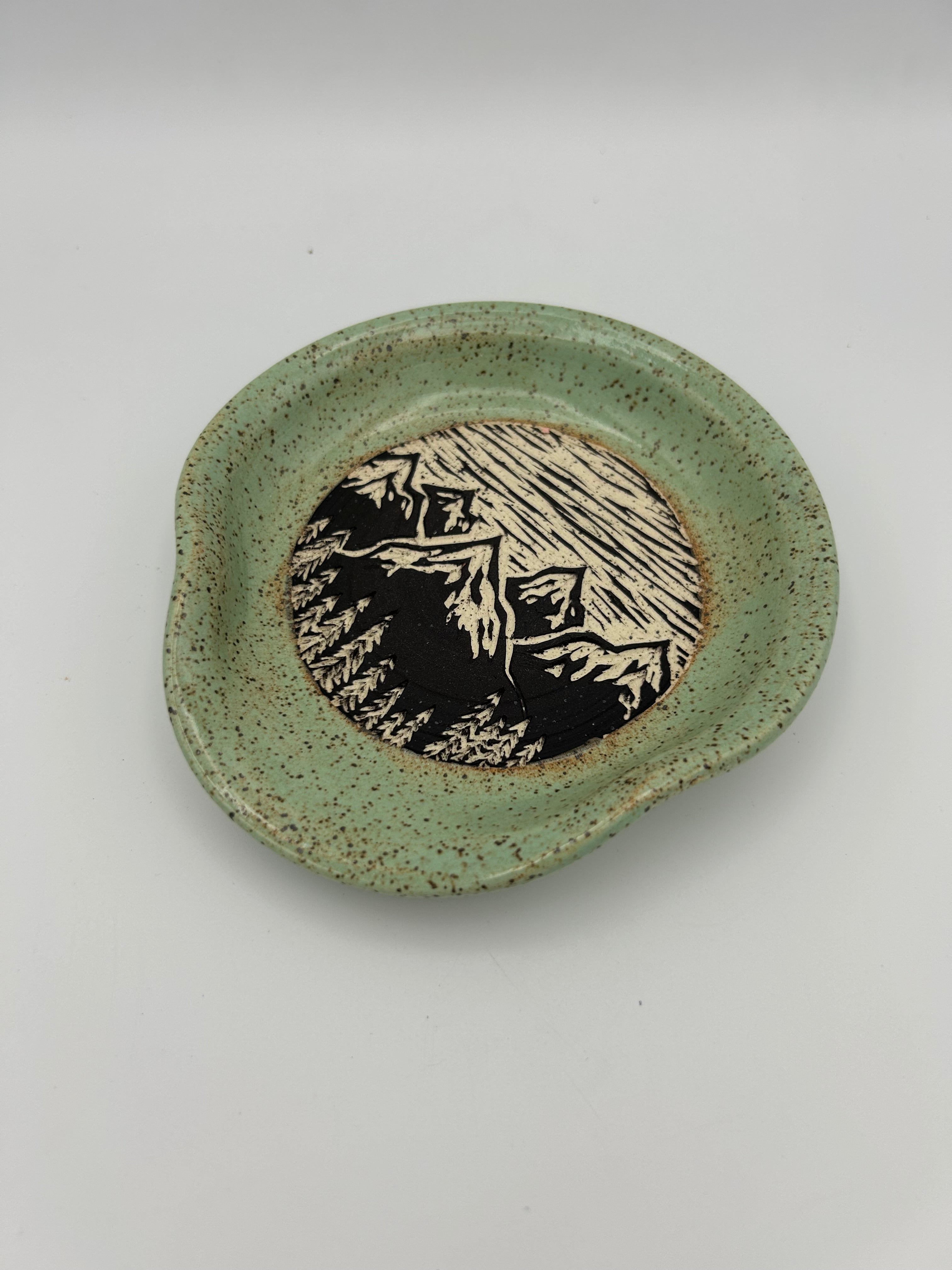 Hand carved mountains adorn these fun spoon rests. Perfect for your kitchen!
