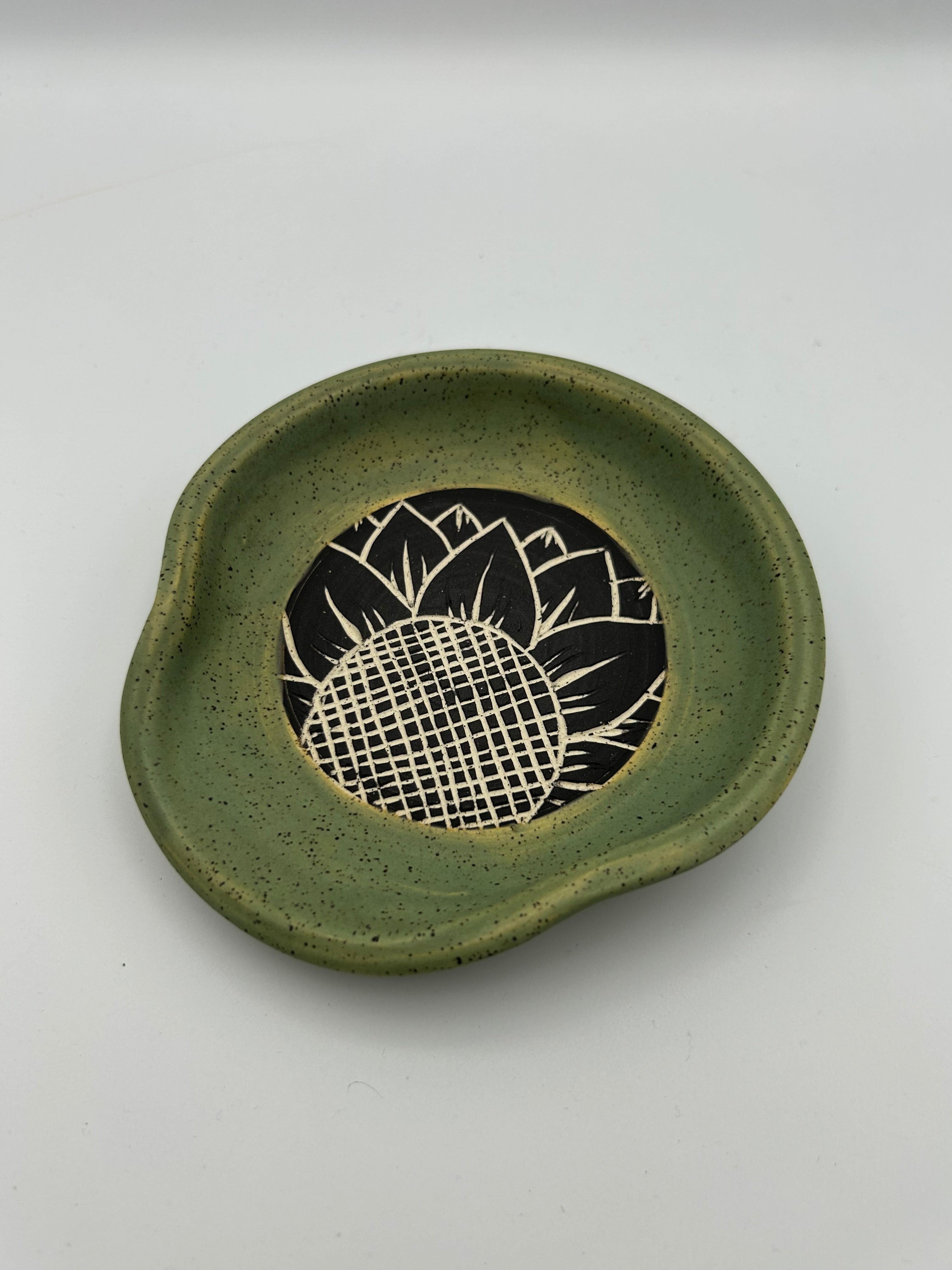 Sgraffito Sunflower Spoon Rest - Matte Green