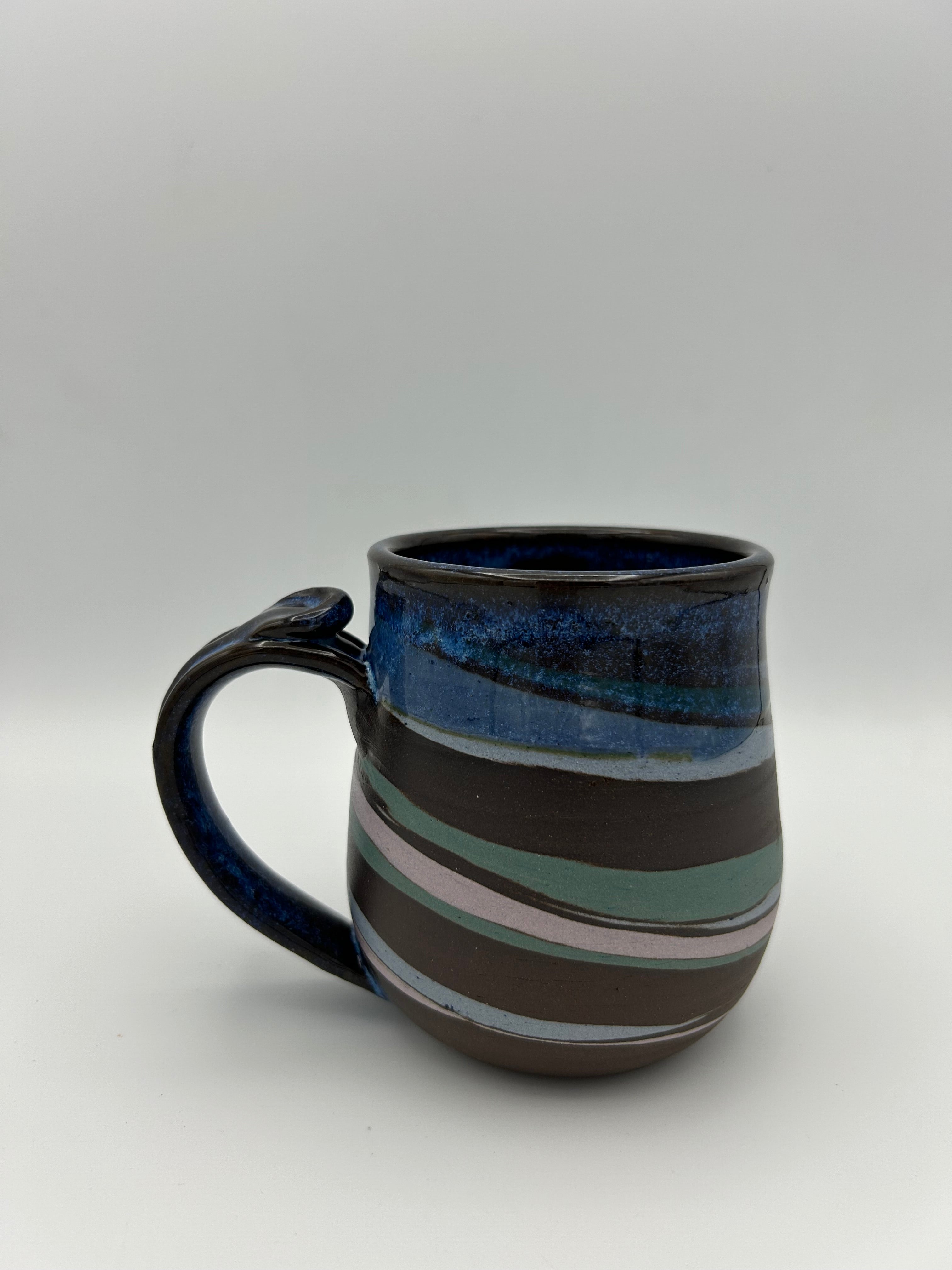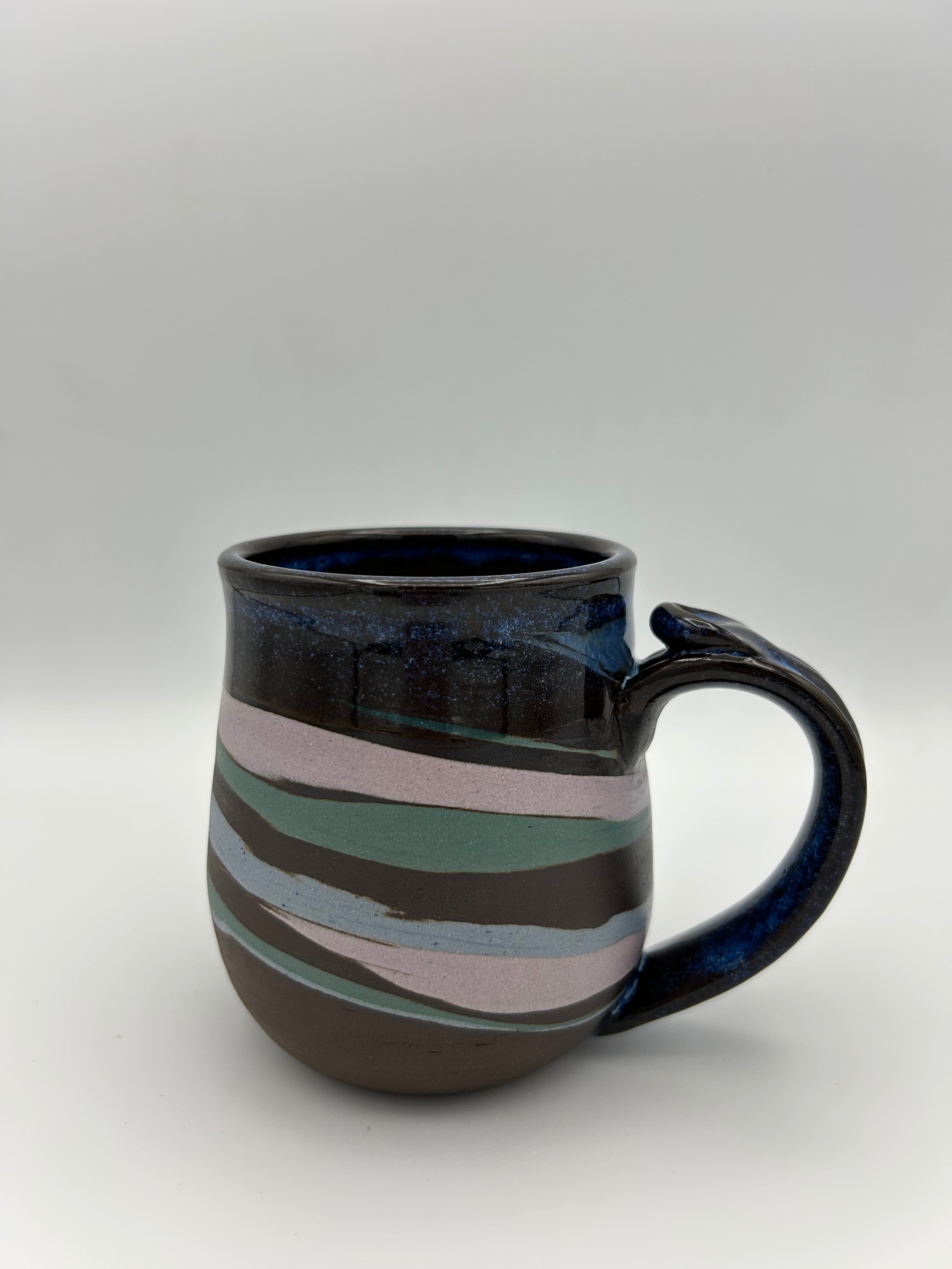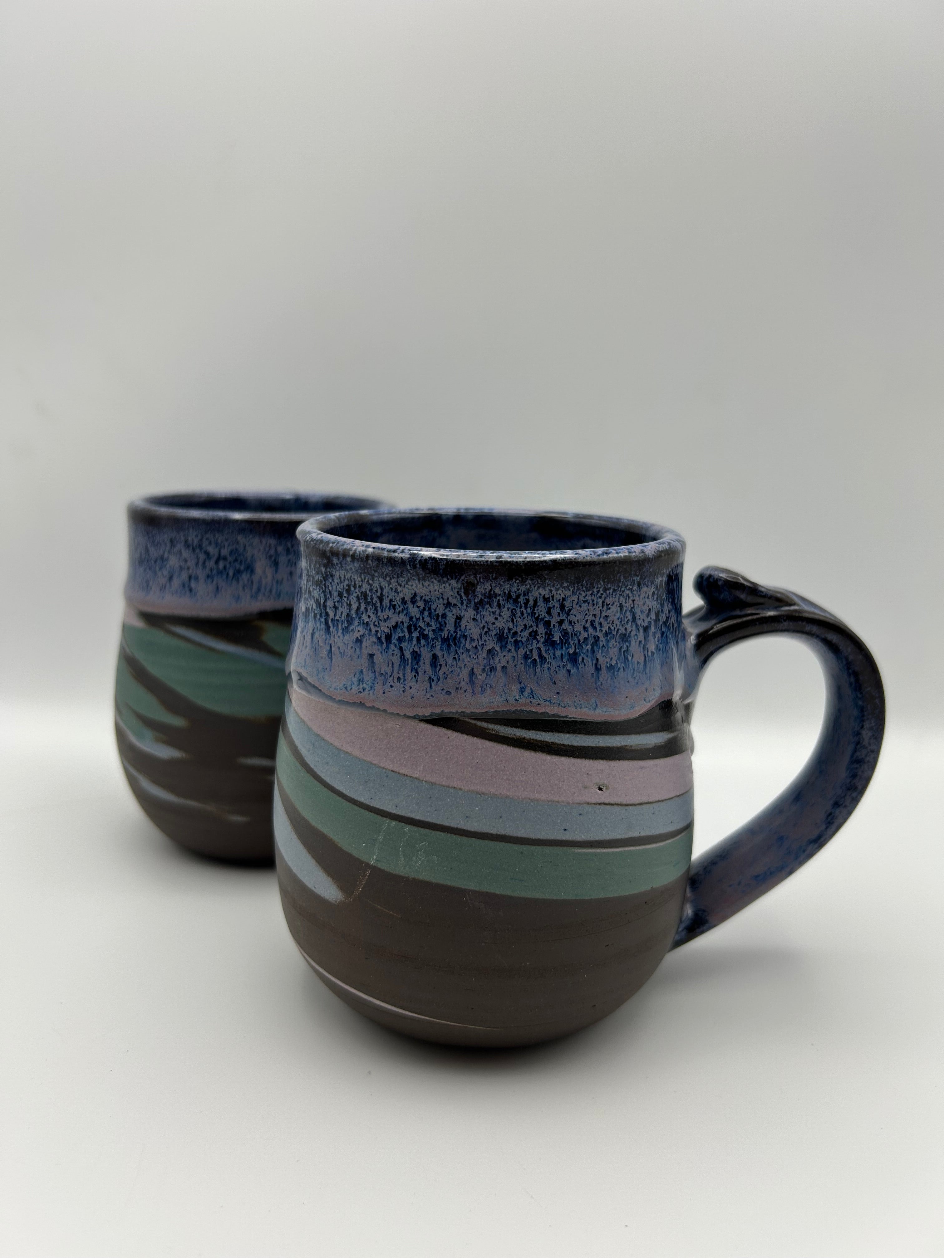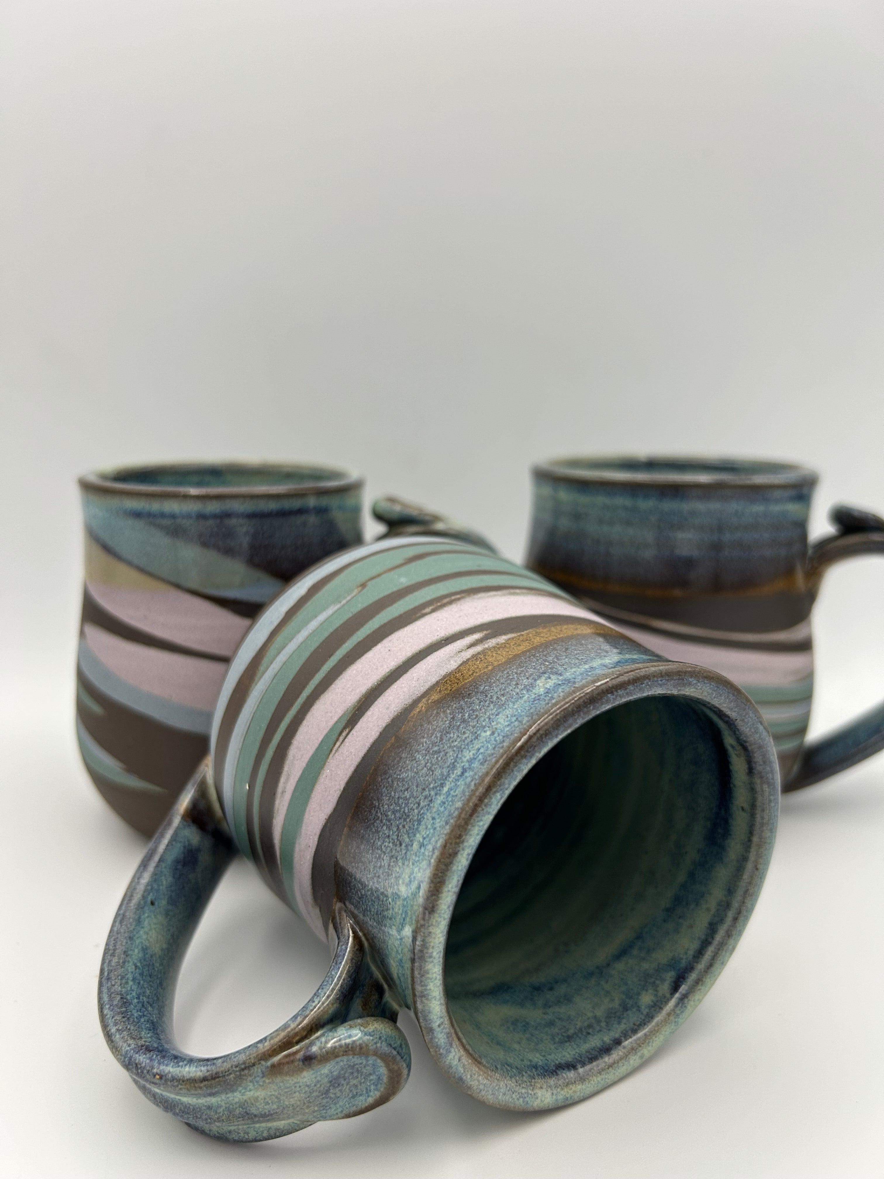 These mugs will all vary in design and are made with four different colors of clay.