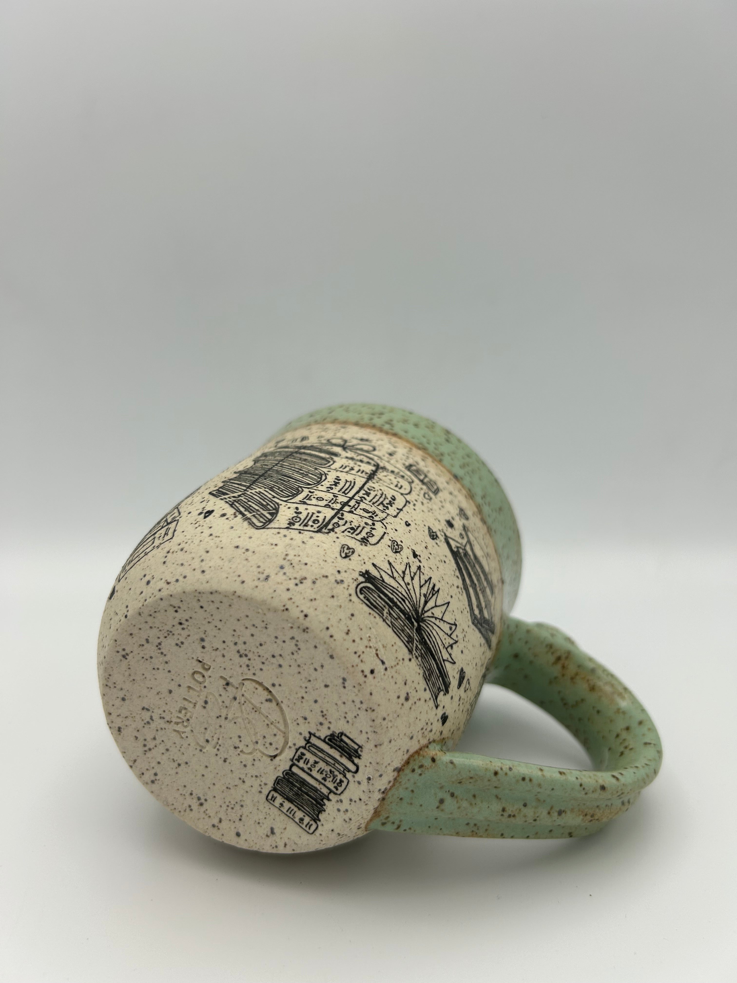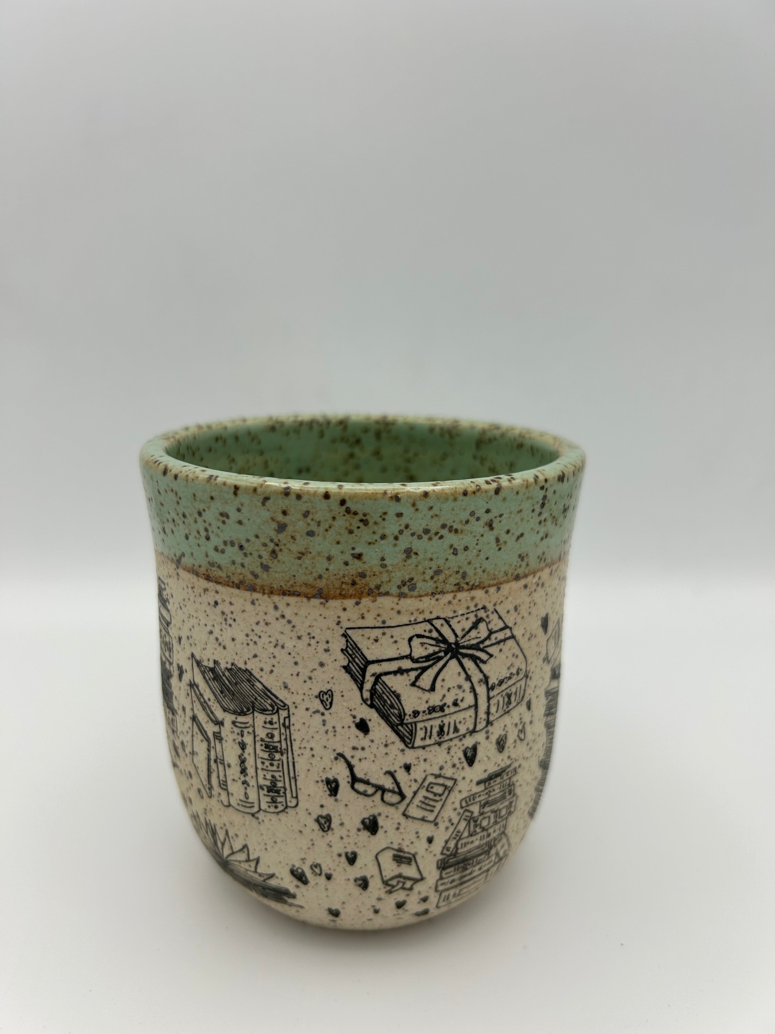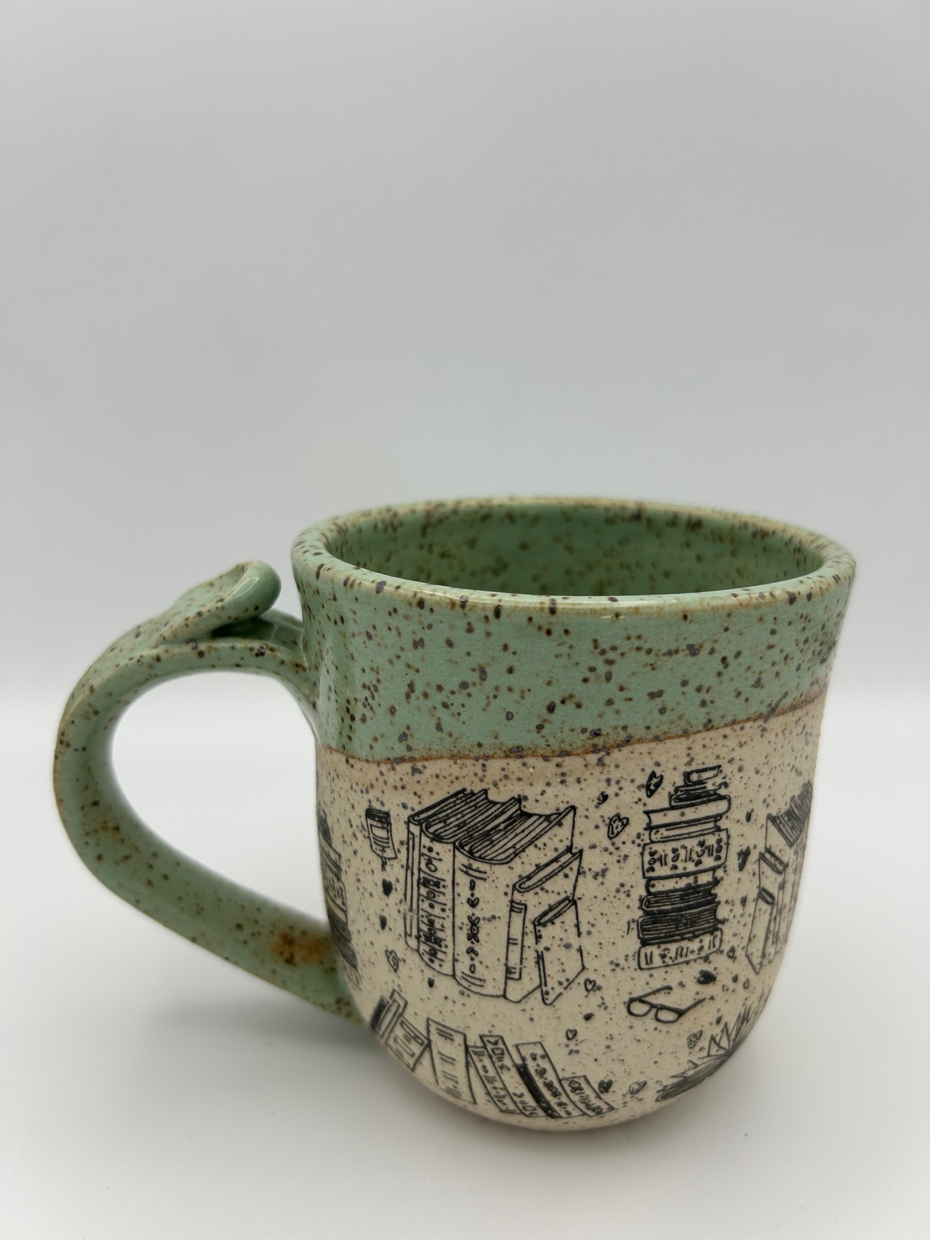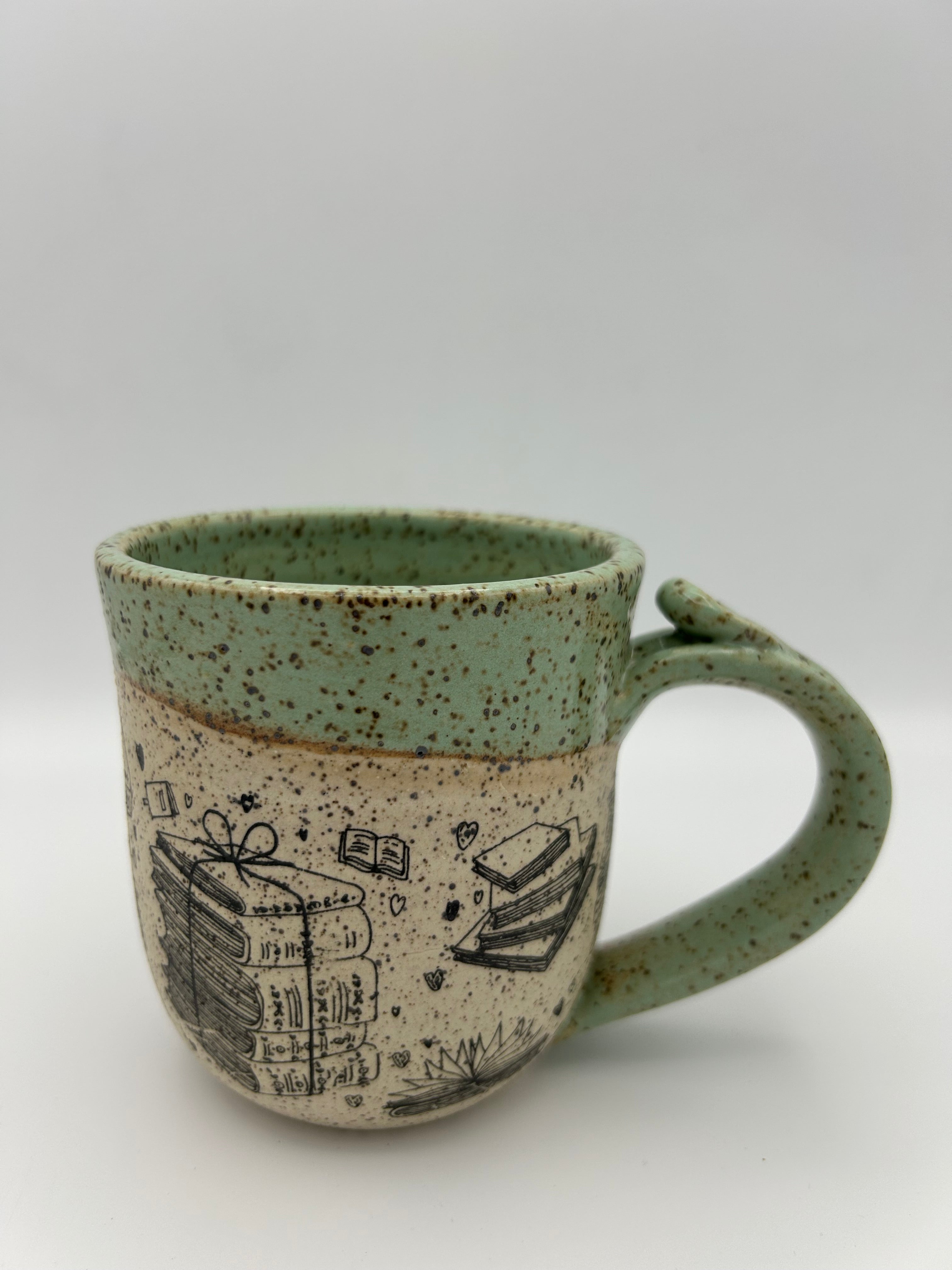 This mug is perfect for a small cup of hot cocoa or coffee. And for those who love books, they are a pretty picture to enjoy between sips.