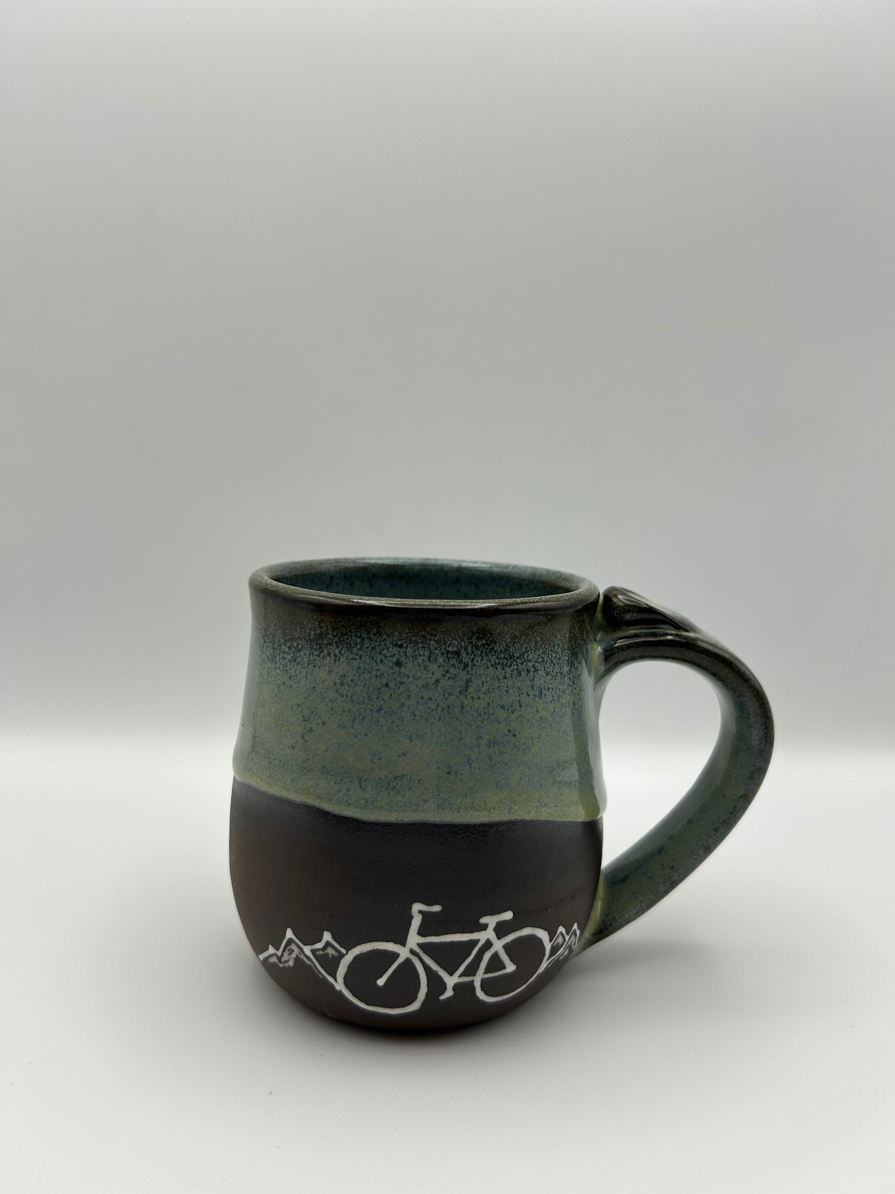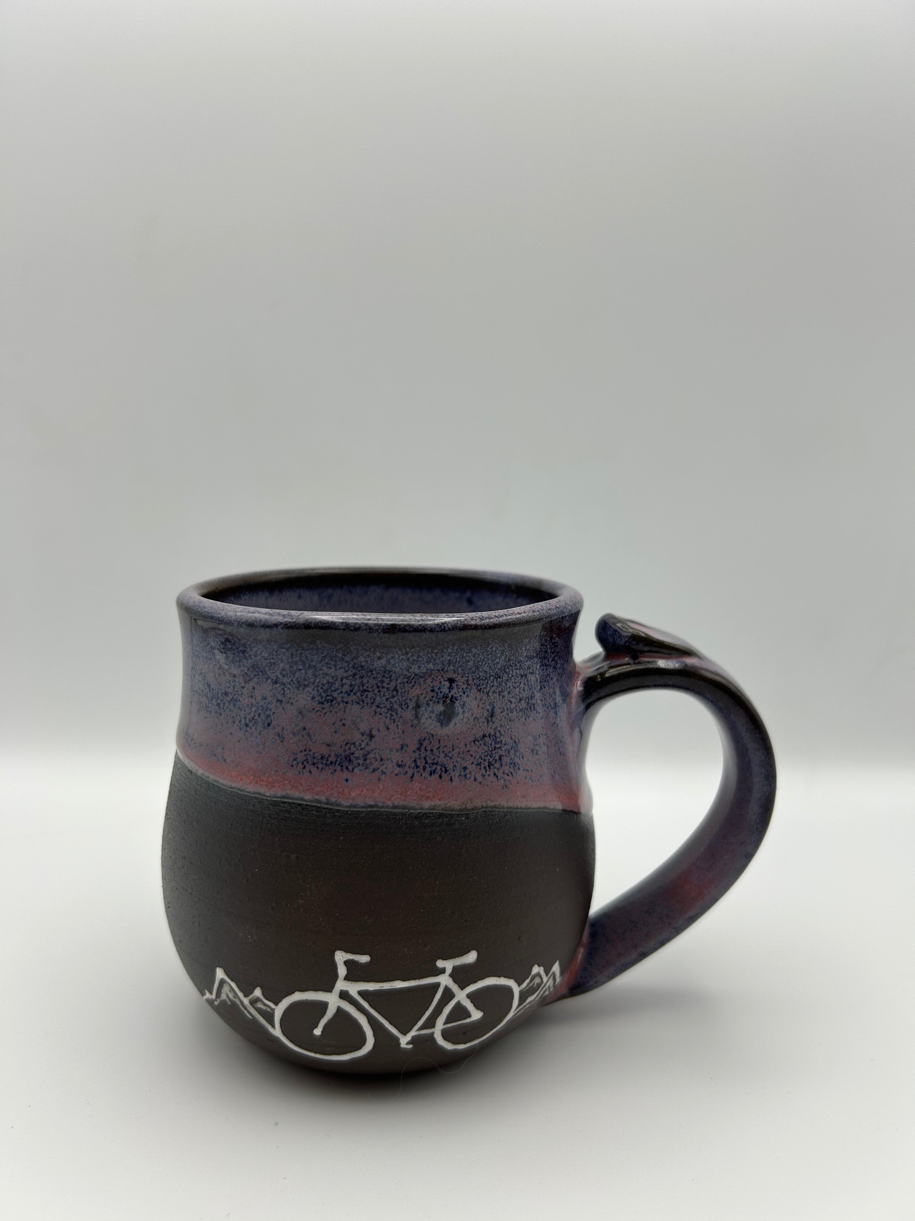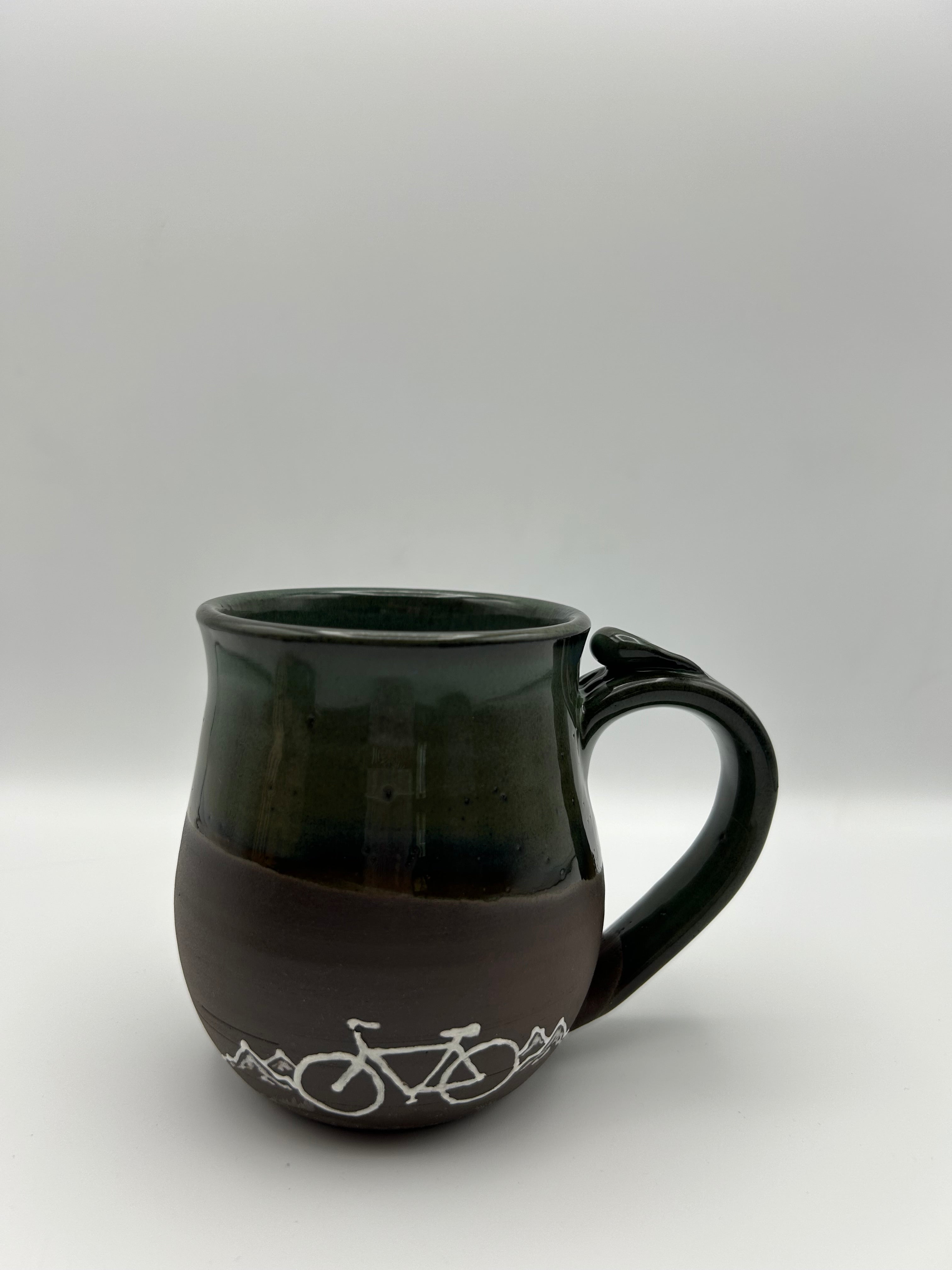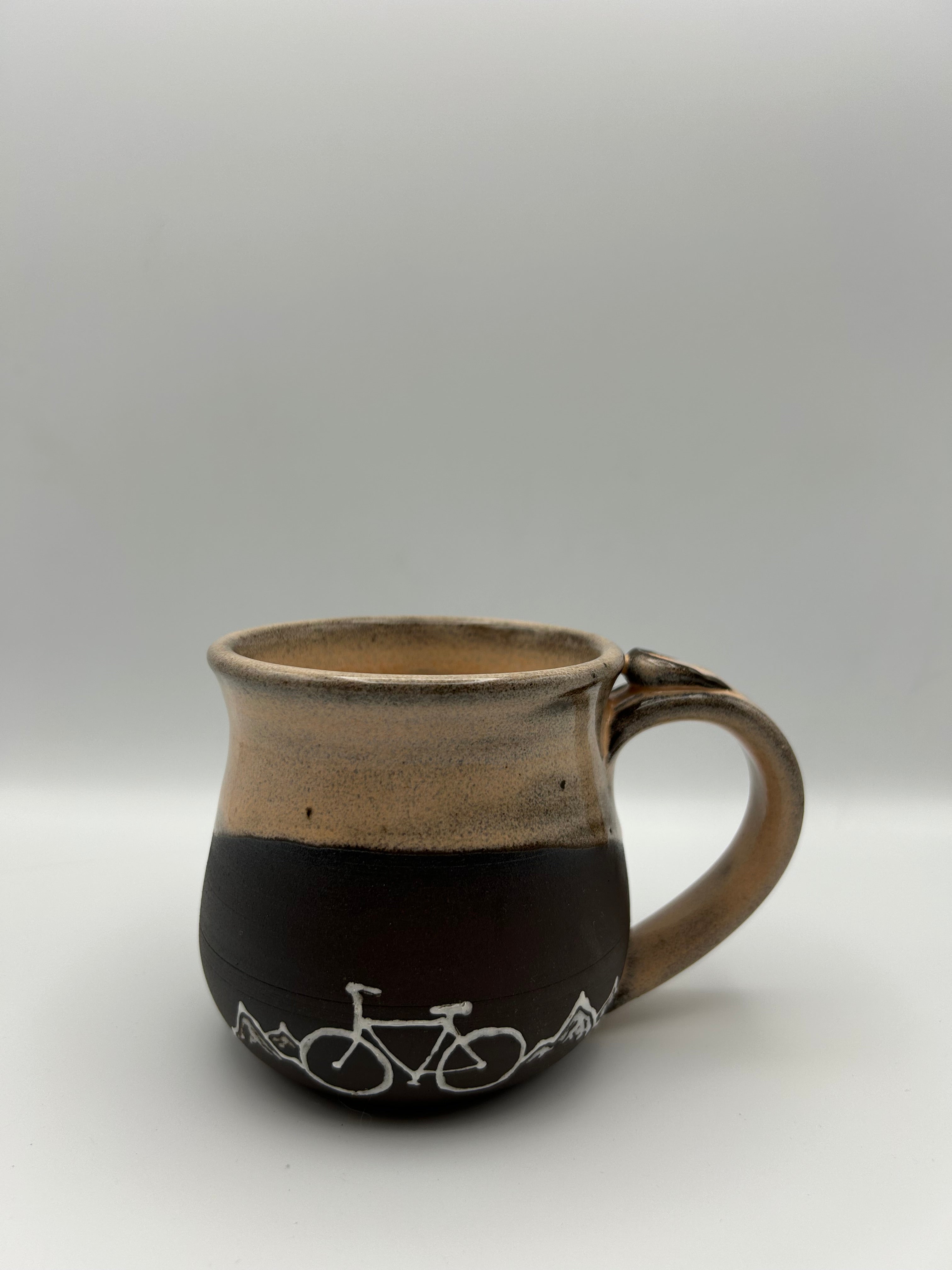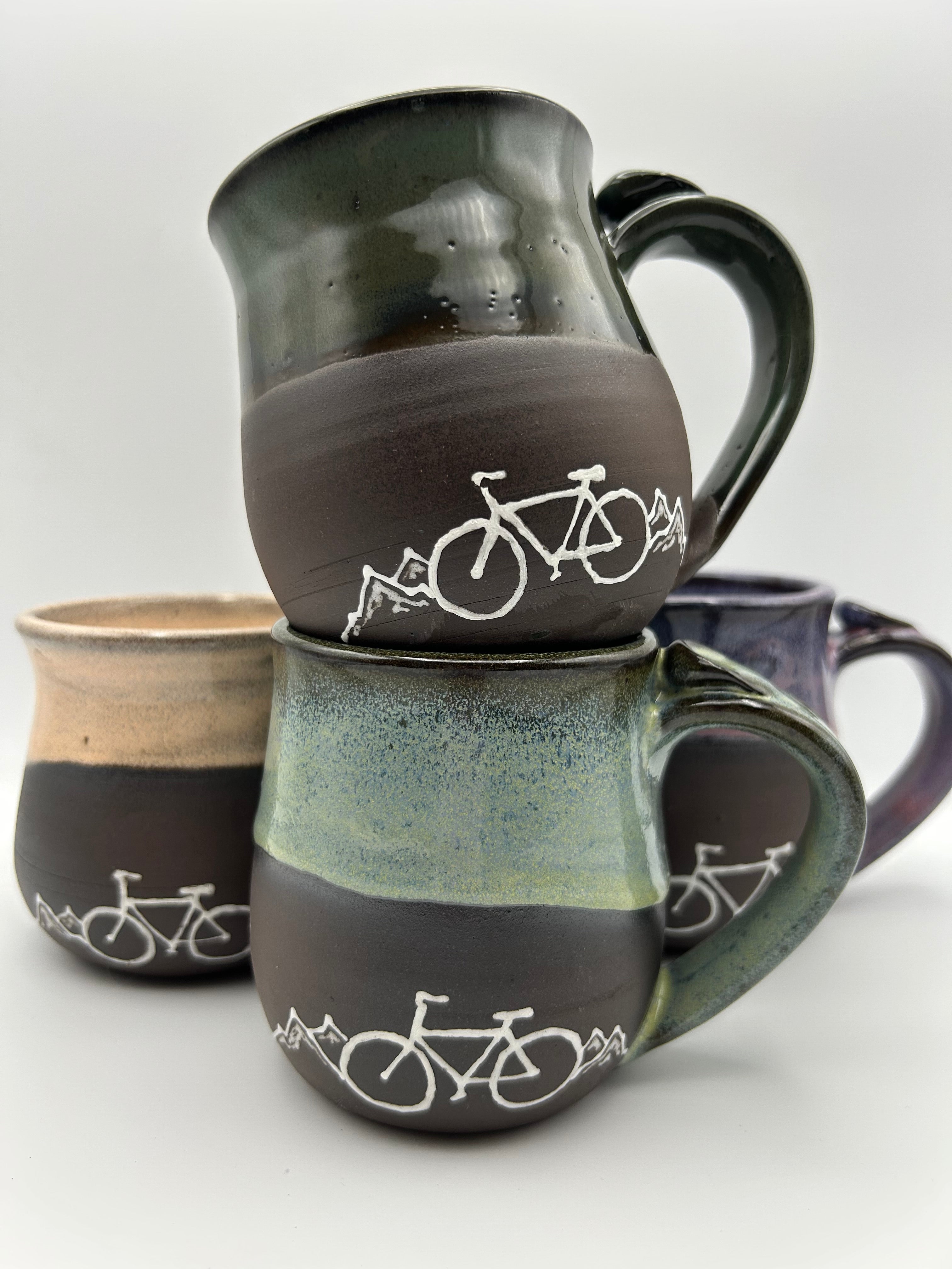 Hand drawn bikes cover these mugs and are a beautiful way to sip your warm drinks!
