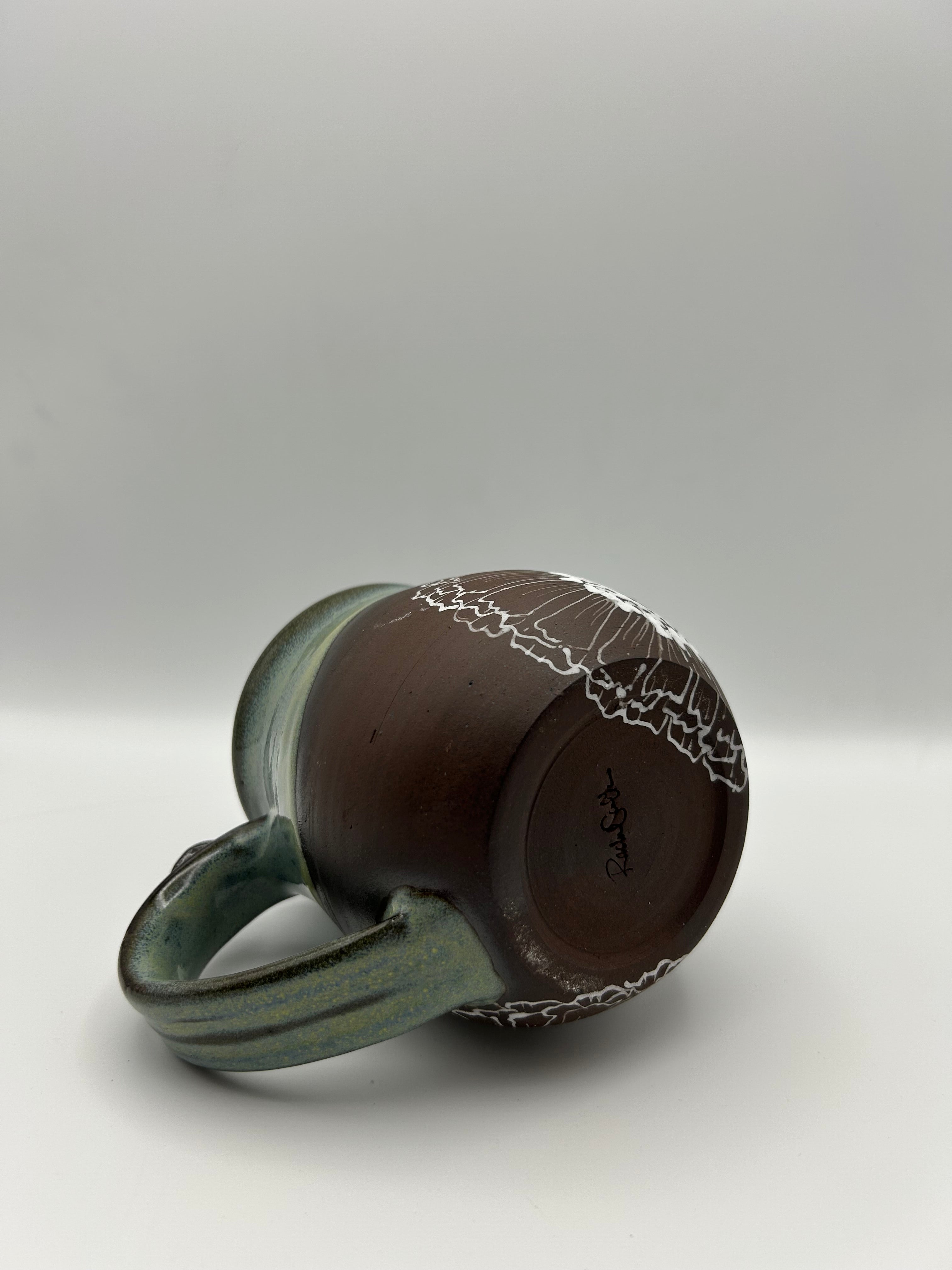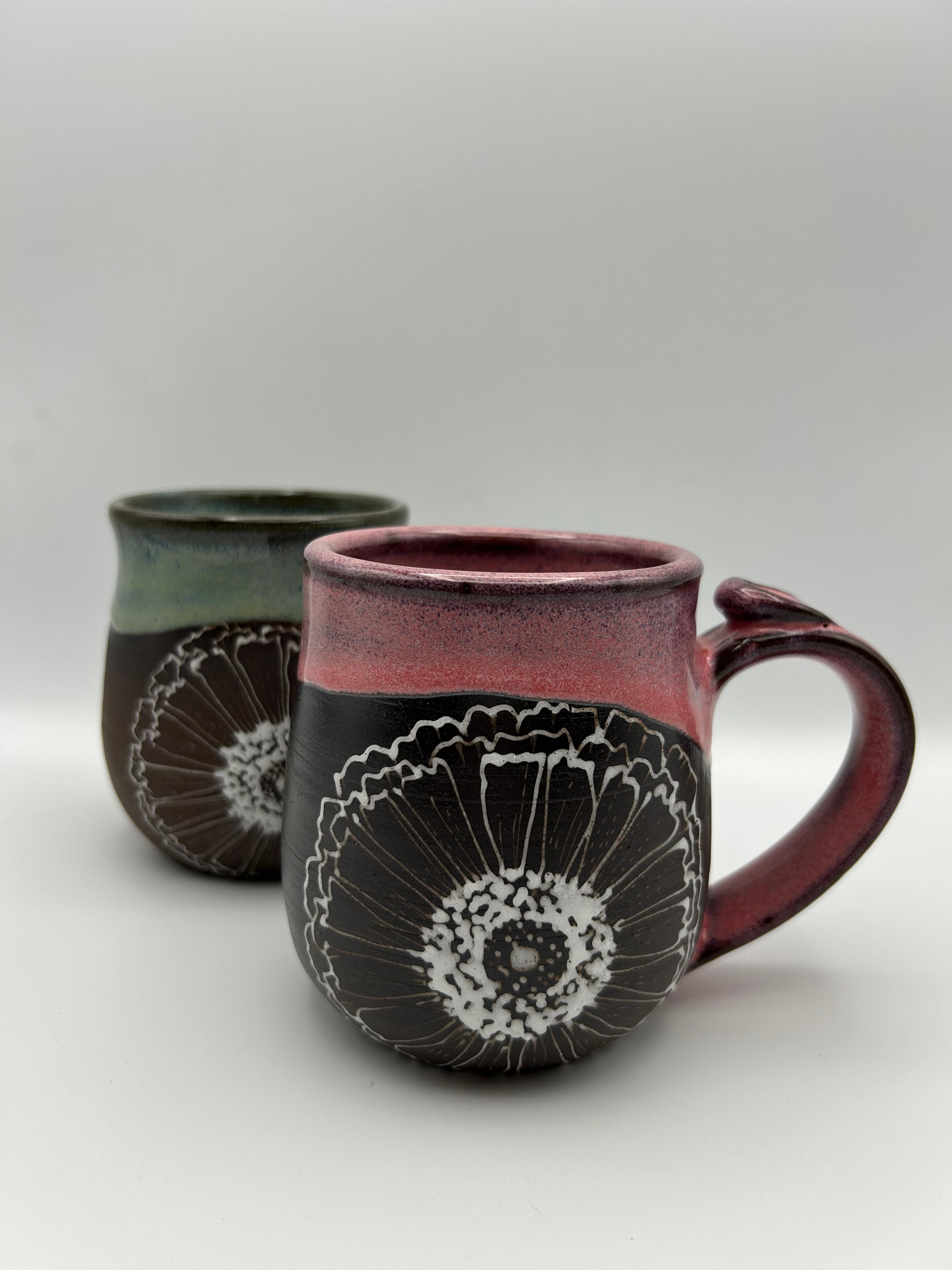 Hand drawn white daisies surround these beautiful mugs. Designs vary.